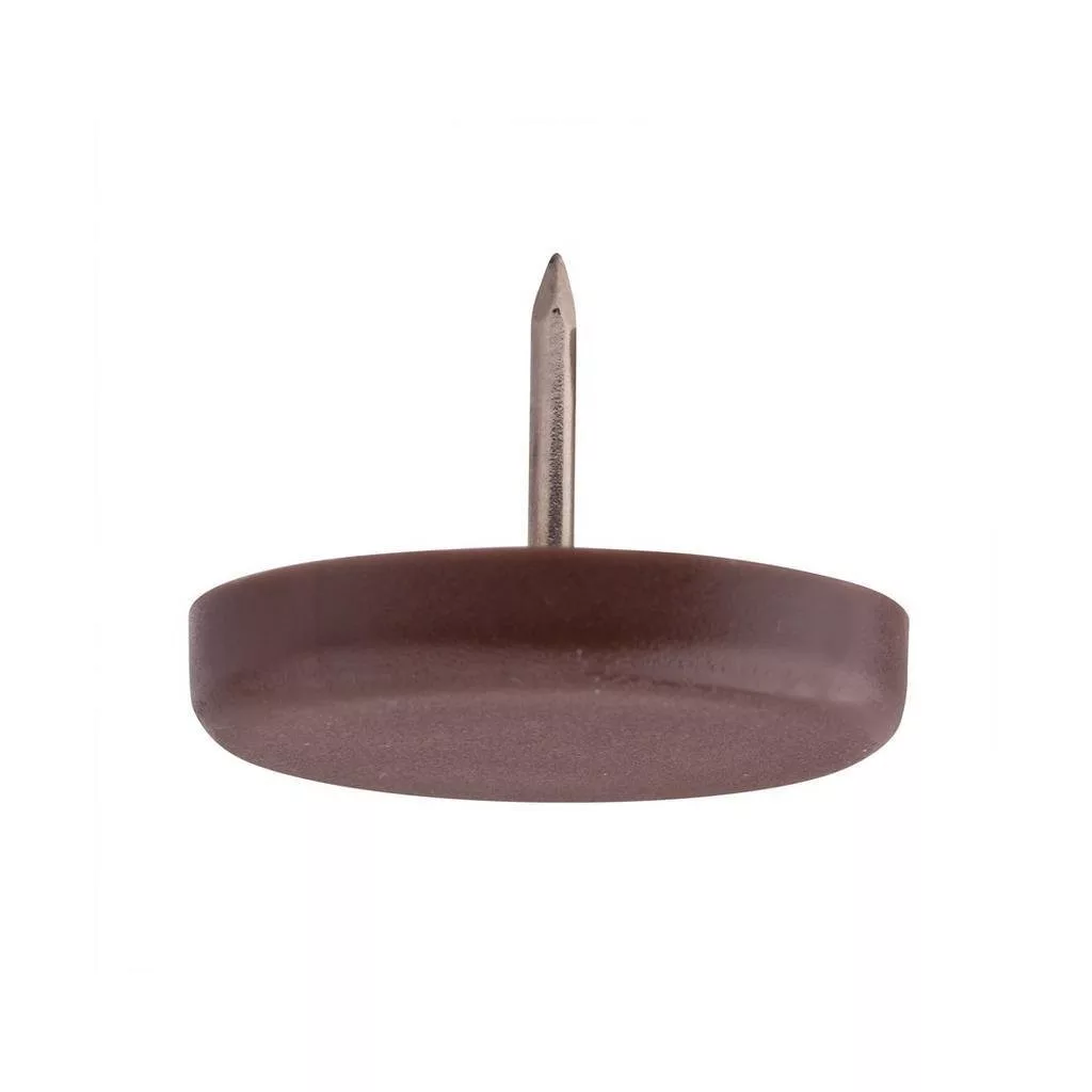 Műanyag sikló 30 mm átmérőjű tüskével, barna színben. Bútorok alá szegezéshez.