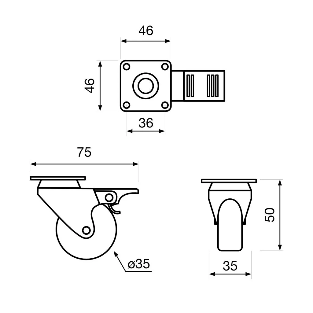 Műszerkerék átmérője 35 mm forgatható lemezzel fékkel teherbírás 40 kg