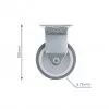 75 mm átmérőjű, fix készülékkerék, 60 kg dinamikus teherbírással. A kerék magassága 100 mm, a kerék mérete 60 x 60 mm. Puha és kemény padlóra tervezve.