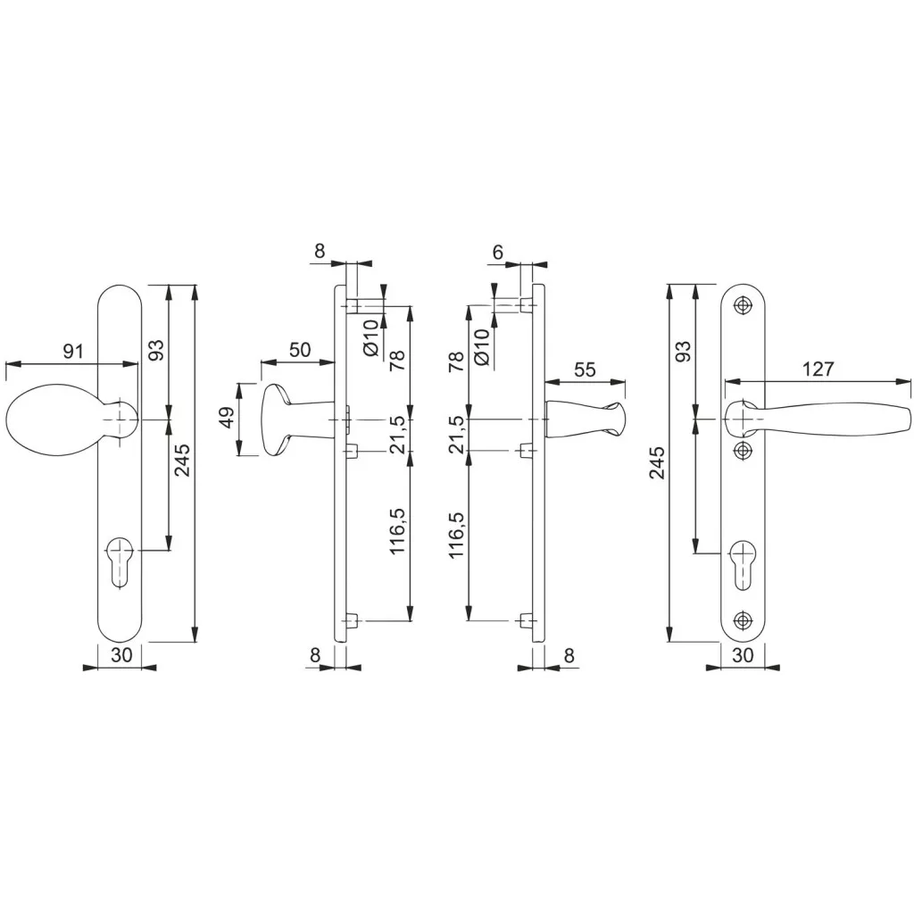 A pajzsos kialakítás fokozott védelmet nyújt az ajtózár számára, miközben esztétikusan illeszkedik a különböző ajtótípusokhoz. A könnyű és gyors felszerelés megkönnyíti a beépítést új ajtók esetén és felújításkor egyaránt. Az ergonomikus formatervezés kényelmes és biztonságos használatot biztosít a mindennapokban.