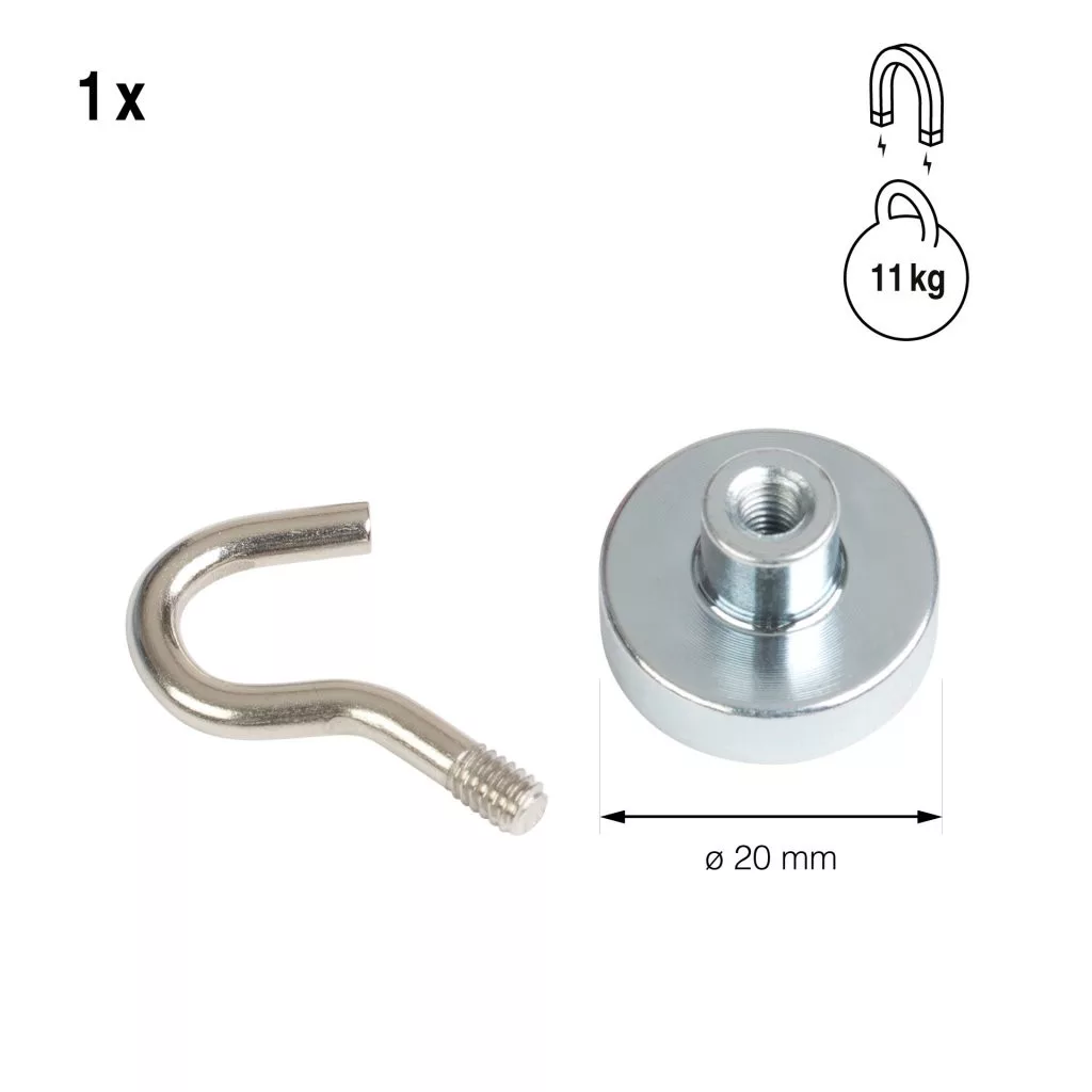 Neodímium erőmágnes kampóval átmérő 20 mm maximális teherbírás 11 kg