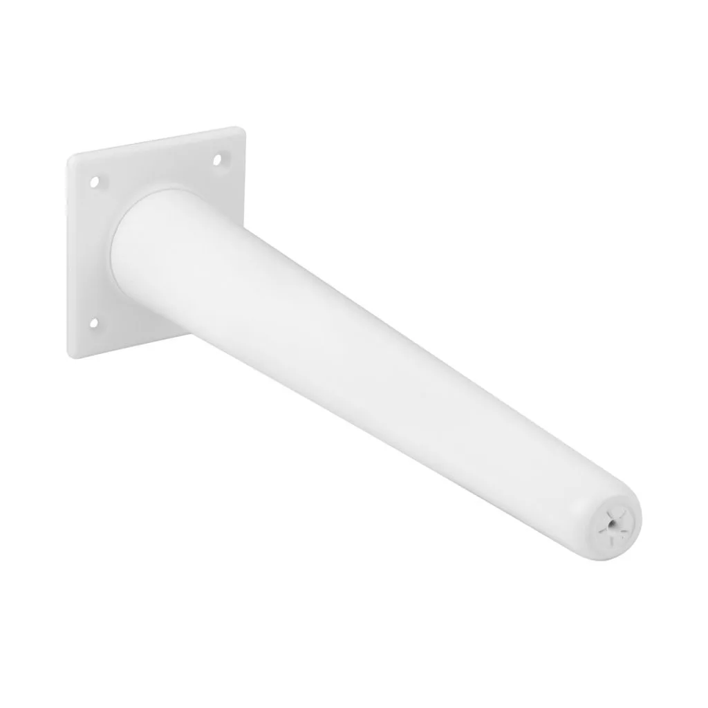 Stílusos, lakkozott bükkfa bútorláb fehér színben, teljes magassága 300 mm, átmérője 46 mm/24 mm a legkeskenyebb részen. A 80x80 mm-es lemez biztosítja a bútor szilárd rögzítését.