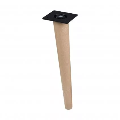 Stílusos lakkozott bükk bútorláb, teljes magassága 300 mm, átmérője 46 mm/26 mm a legkeskenyebb részen. A 80x80 mm-es lemez biztosítja a bútor szilárd rögzítését.