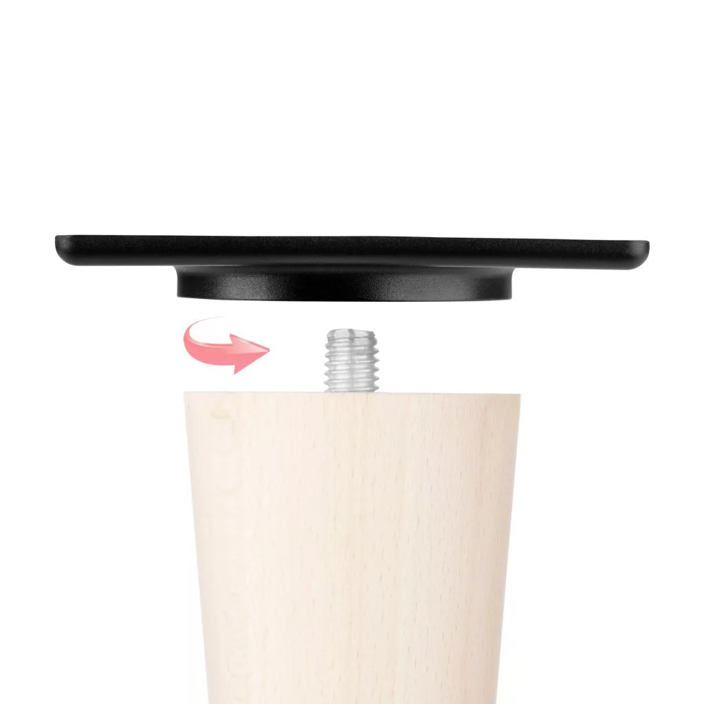 Adapter Nordic bútorlábakhoz, 80x80 mm méretben, 55 mm osztástávolsággal, fekete színben. Az adapter közvetlenül a 160 mm és 310 mm magas Nordic bútorláb típushoz készült. A Nordic bútorlábak alapfelszereltségként tartalmaznak egy adaptert, amely a láb kúpos, ferde megjelenését szimulálja. Ez az adapter ezzel szemben a bútorláb egyenes megjelenéséhez van igazítva, amelyet külön is megrendelhet.