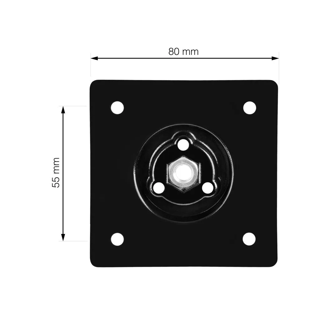 Adapter Nordic bútorlábakhoz, 80x80 mm méret, 55 mm osztástávolsággal és 38 mm magassággal, fekete színben. Az adapter közvetlenül a 715 mm magas Nordic bútorláb típushoz készült. A 715 mm magas Nordic bútorlábak alapfelszereltségként tartalmaznak egy adaptert, amely a láb kúpos/ferde megjelenését szimulálja. Ezzel az adapterrel éppen ellenkezőleg, a bútorláb egyenes lejtését érheti el.