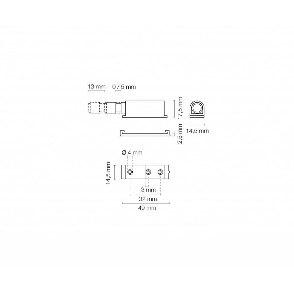 Nyomásra nyitható fogantyú nélküli ajtónyitó rendszer 50x14 mm szürke