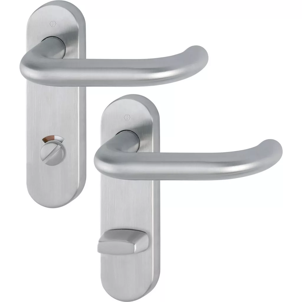A PARIS rövidpajzsos WC objekt biztonsági kilincsgarnitúra letisztult formavilágával és matt nemesacél felületével modern, visszafogott megjelenést ad az ajtónak. Kifejezetten olyan helyiségekhez ajánlott, ahol fontos a megbízható működés és az igényes megjelenés, például irodai mosdók, mellékhelyiségek vagy közületi terek.