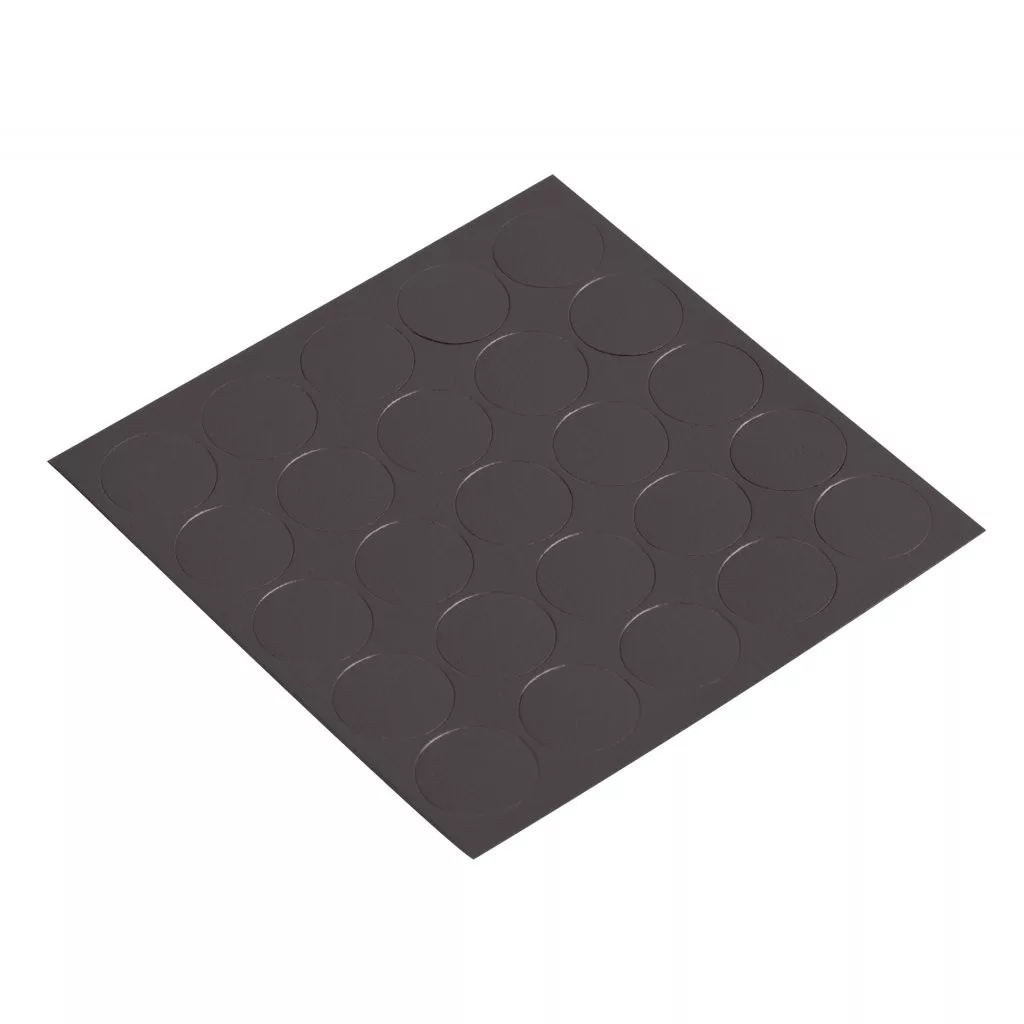 Antracit színű, 14 mm átmérőjű öntapadós kupakok, amelyek alkalmasak lyukak, süllyesztett csavarfejek vagy egyéb hibák gyors és hatékony elfedésére azonos dekorációjú bútorokon. A lap 25 öntapadós kupakot tartalmaz.