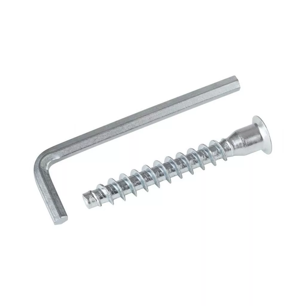 7 mm átmérőjű és 50 mm magas, horganyzott acélból készült Confirmat összekötő csavar fogantyúval. A csomag 20 darabot tartalmaz.