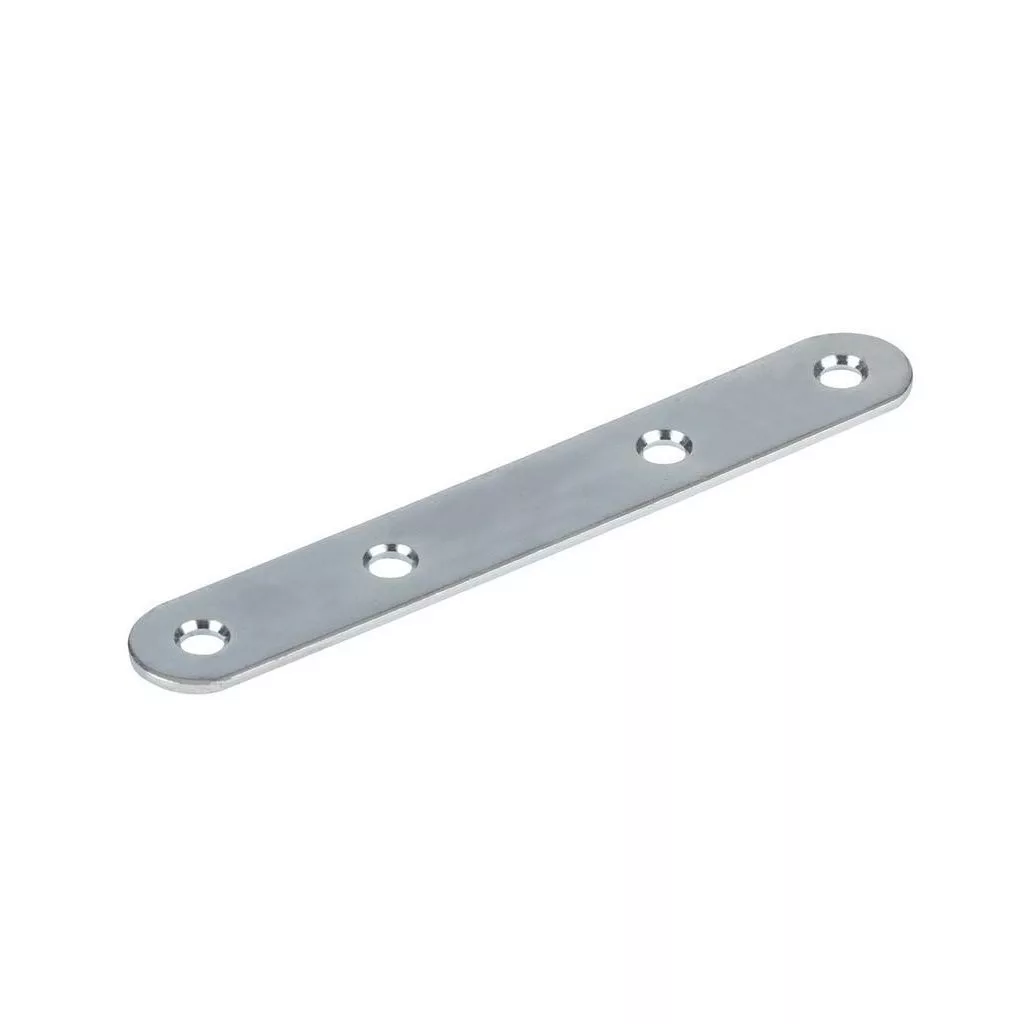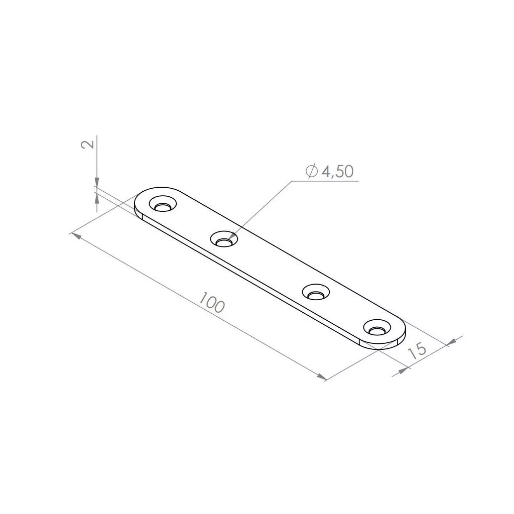 100 mm hosszú és 15 mm széles horganyzott összekötő lemez süllyesztett rögzítőfuratokkal.