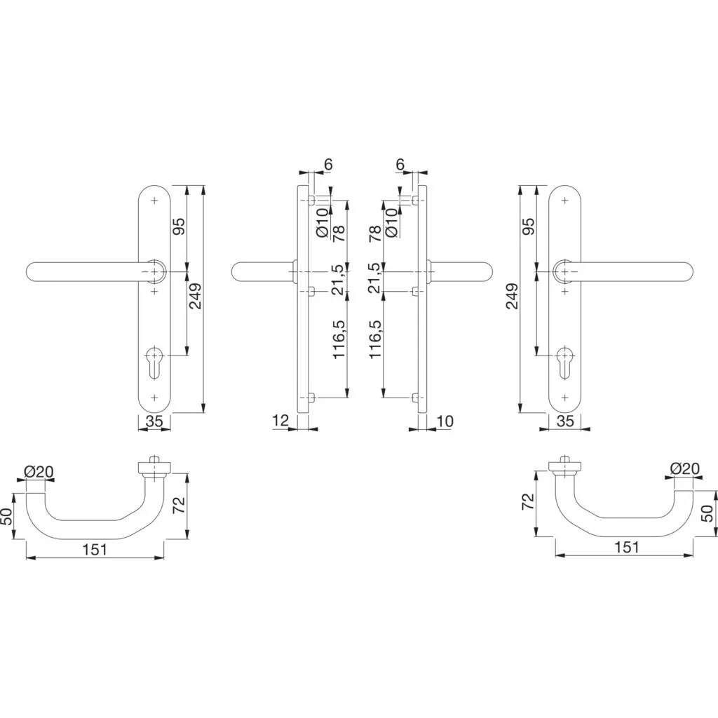 HOPPE PARIS biztonsági kilincsgarnitúra PZ92 67-72 mm nemesacél