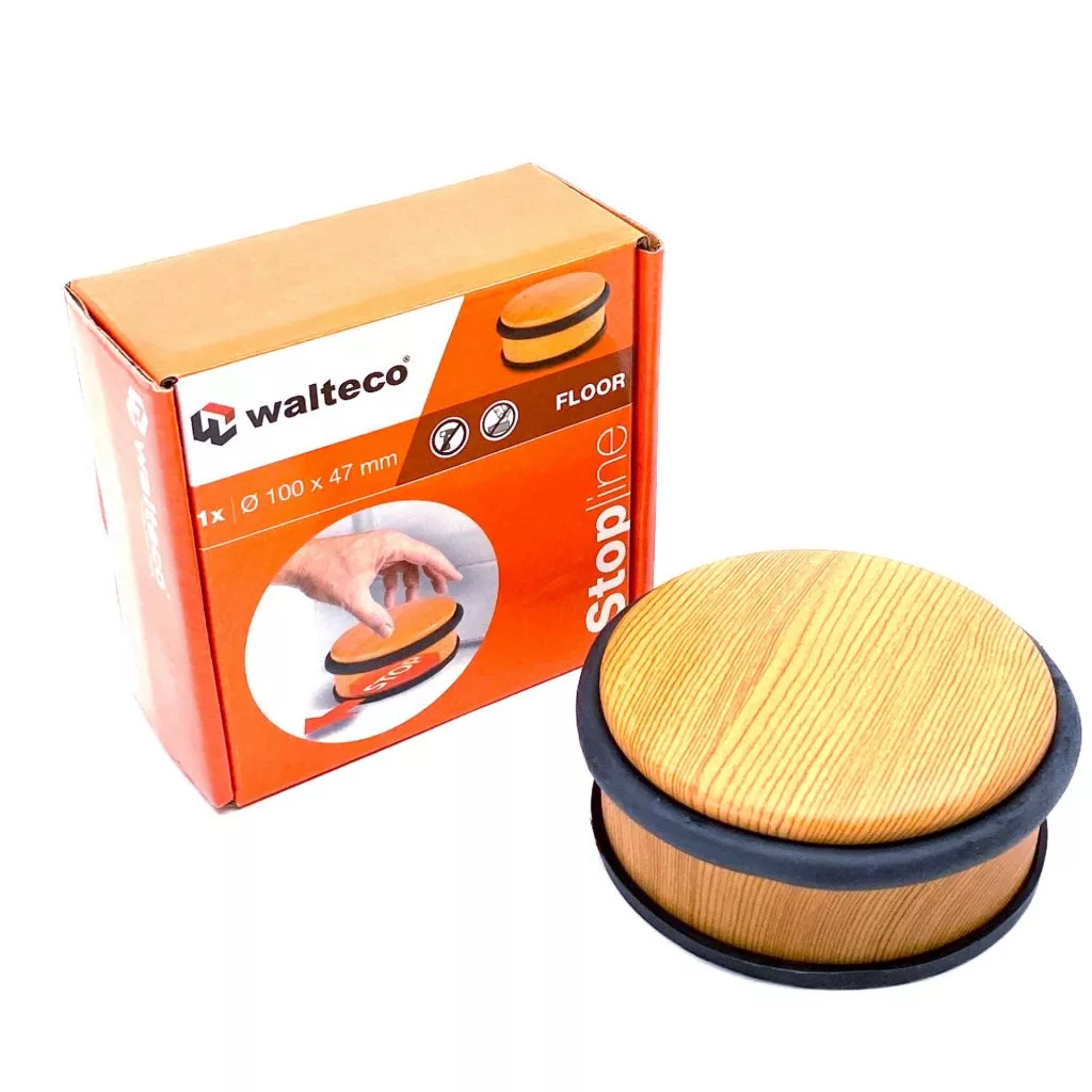 Nehéz, szabadon álló ajtóütköző fa dekorral, 110 mm átmérővel és 47 mm szélességgel, súlya 1,1 kg (gumihüvellyel együtt). Védi a falakat és a bútorokat az ajtó ütődéseitől.