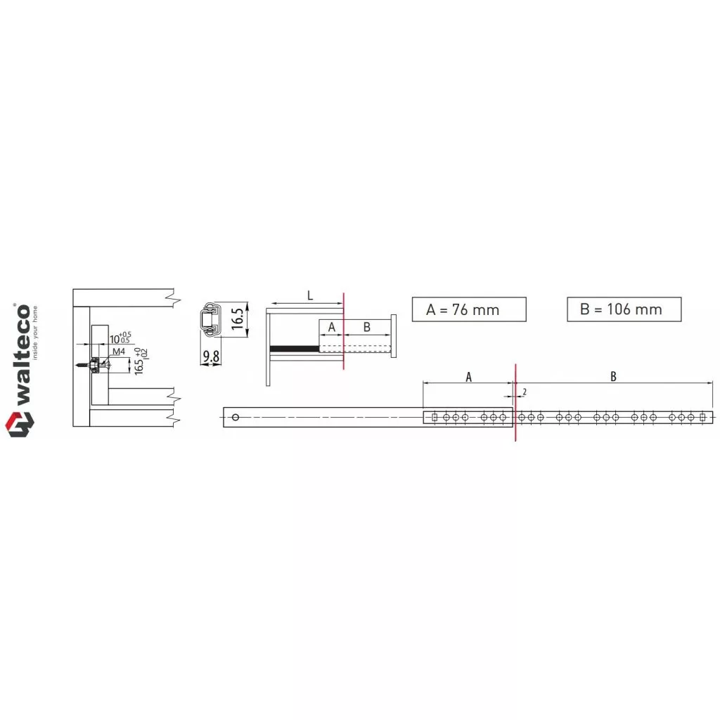 Részben golyóscsapágyas, horganyzott felületű, 180 mm hosszú csúszka