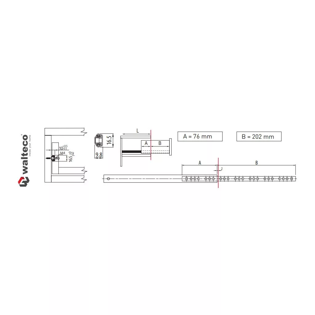 Részben golyóscsapágyas, horganyzott felületű csúszka, 280 mm hosszú