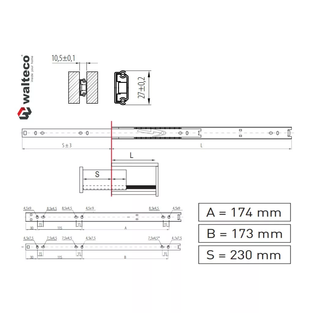 Részleges golyóscsapágyas csúszka 350/27mm teherbírás 15 kg 1 pár