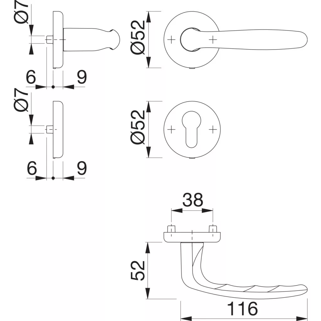 A rozettás kialakítás letisztult és elegáns megjelenést biztosít, miközben a könnyű és gyors felszerelés jelentősen megkönnyíti a beépítést új ajtók esetén és felújításkor egyaránt. Az ergonomikus forma kényelmes fogást és megbízható működést nyújt a mindennapi használat során.
