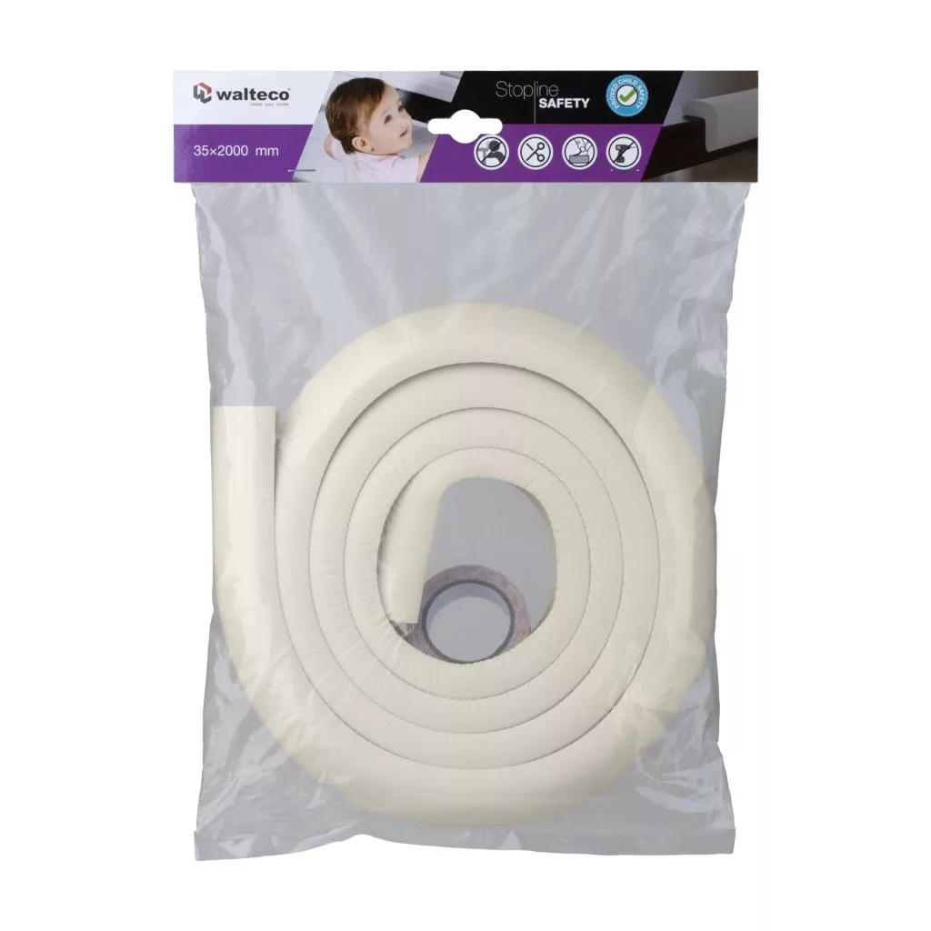 Öntapadó habszivacs sarokvédő, 35 mm széles és 2000 mm hosszú, bézs színű. Sarokvédőként szolgál.
