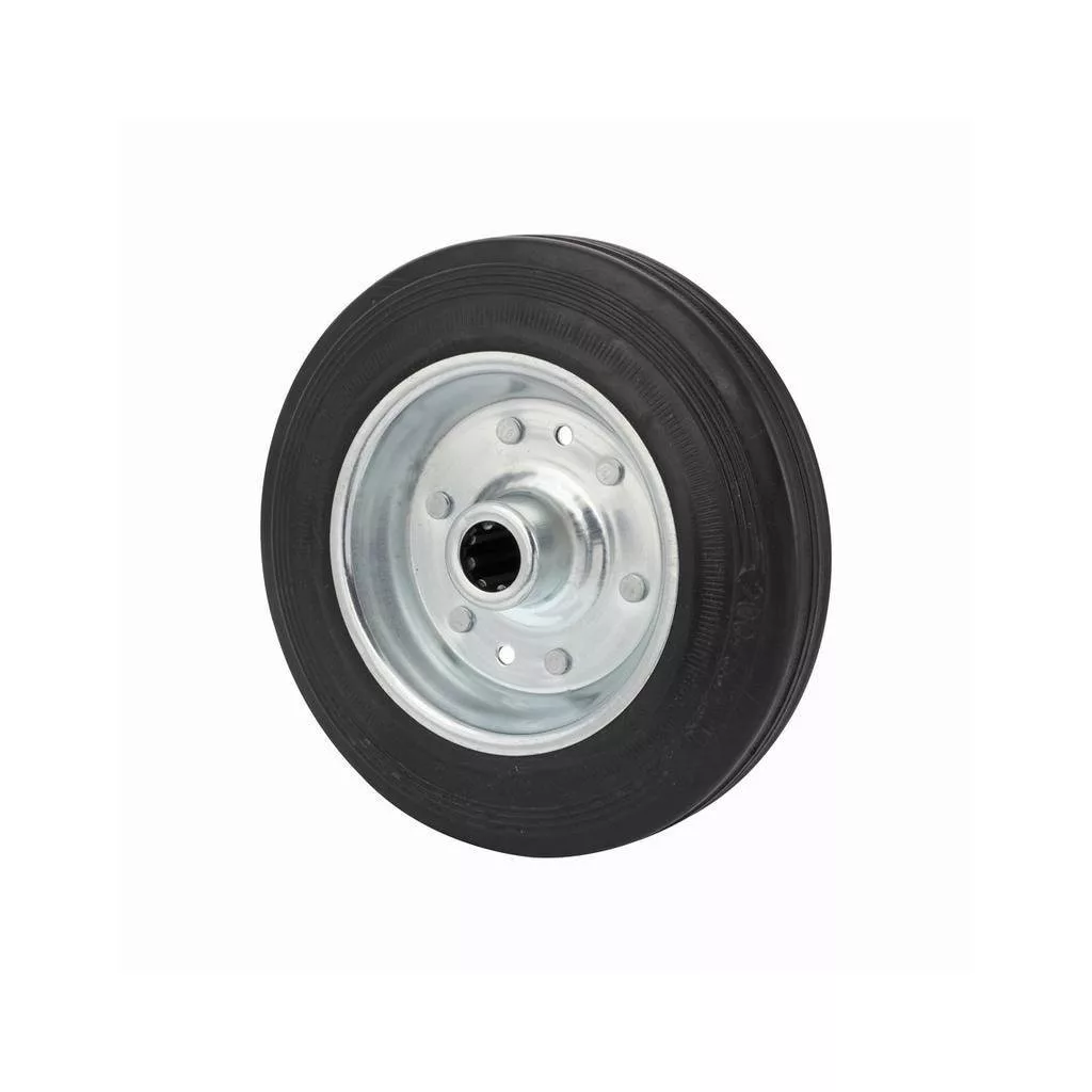 200 mm átmérőjű, 200 kg dinamikus teherbírású és 44 mm széles fekete gumi futófelülettel rendelkező szállítókerék. Tengelyfurat átmérője 20 mm, agyhossz 60 mm. Acél tárcsa, görgőscsapágy.