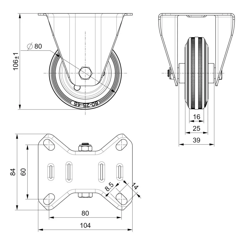 Szállítókerék fix átmérő 80 mm