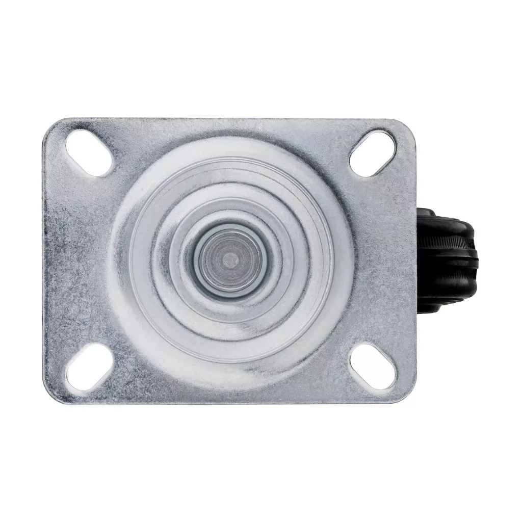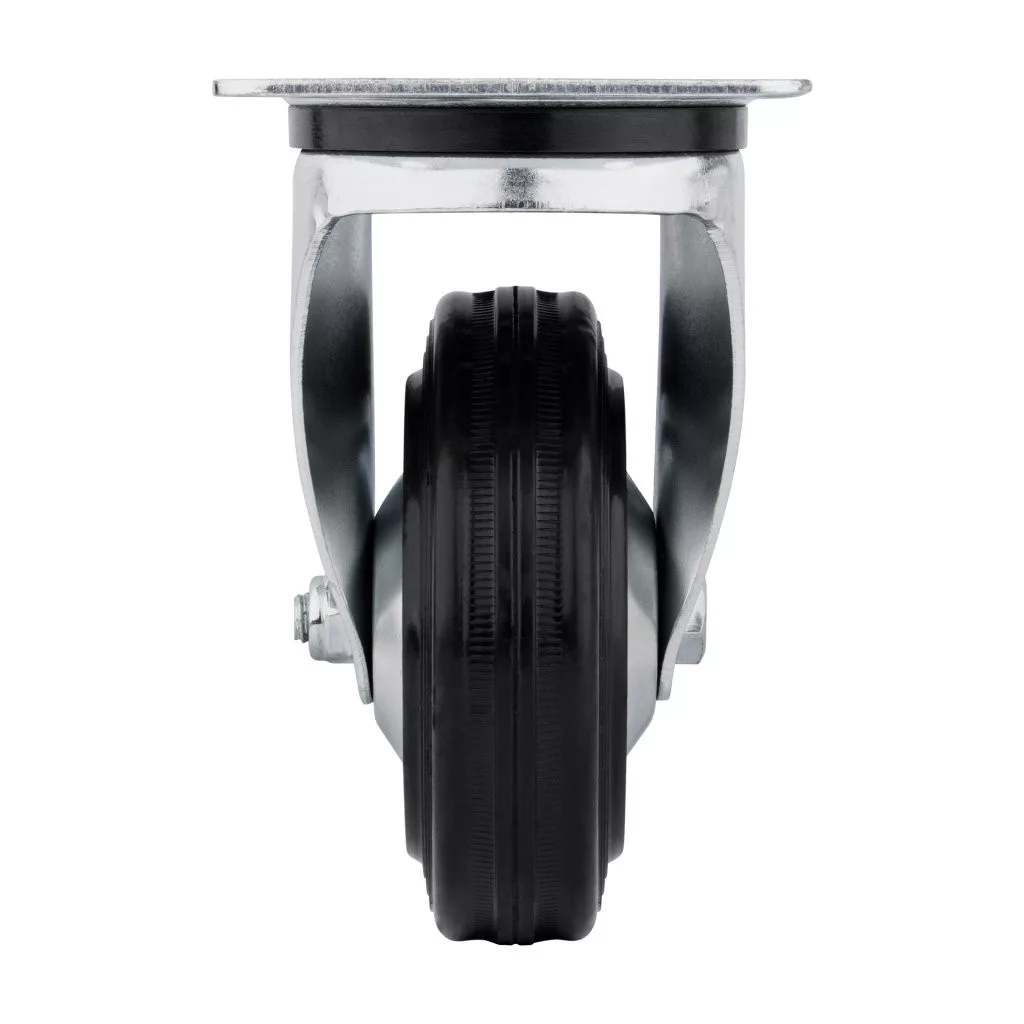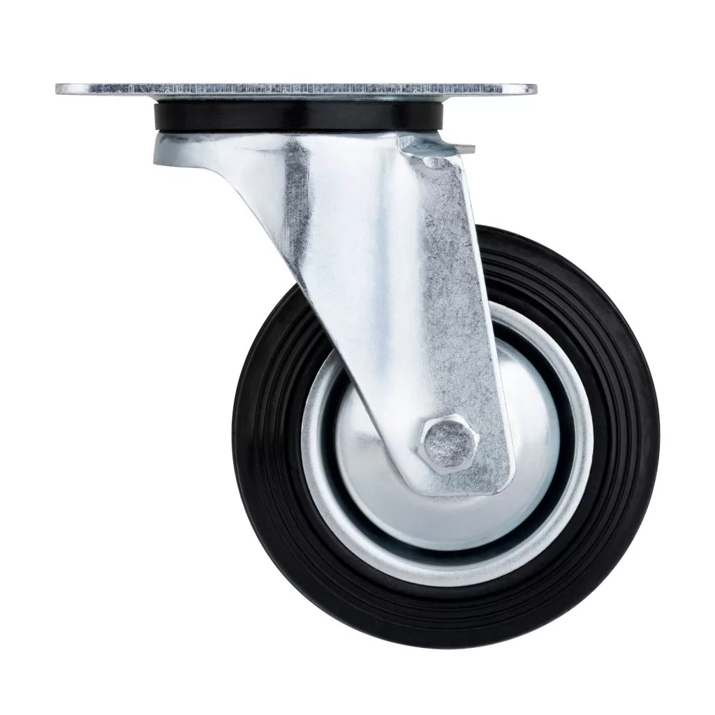 100 mm átmérőjű, forgó szállítókerék 70 kg dinamikus teherbírással. Kerékmagasság 128 mm, 105 x 80 mm méretű tányérral. Puha és kemény padlóra tervezve.