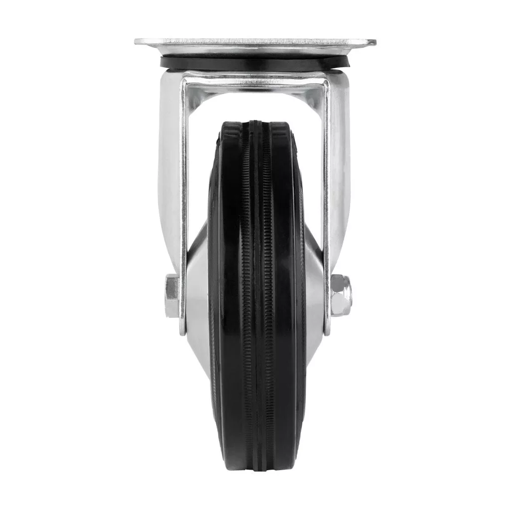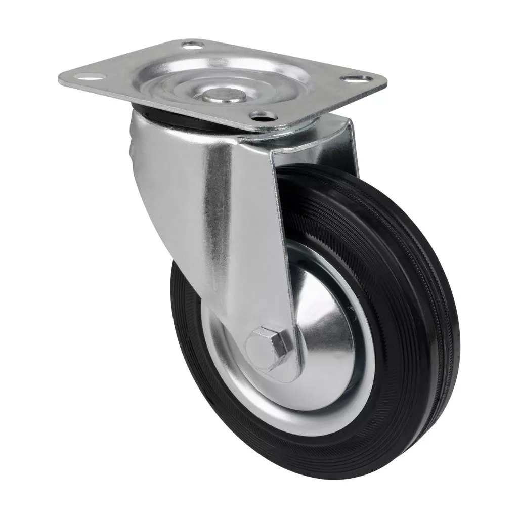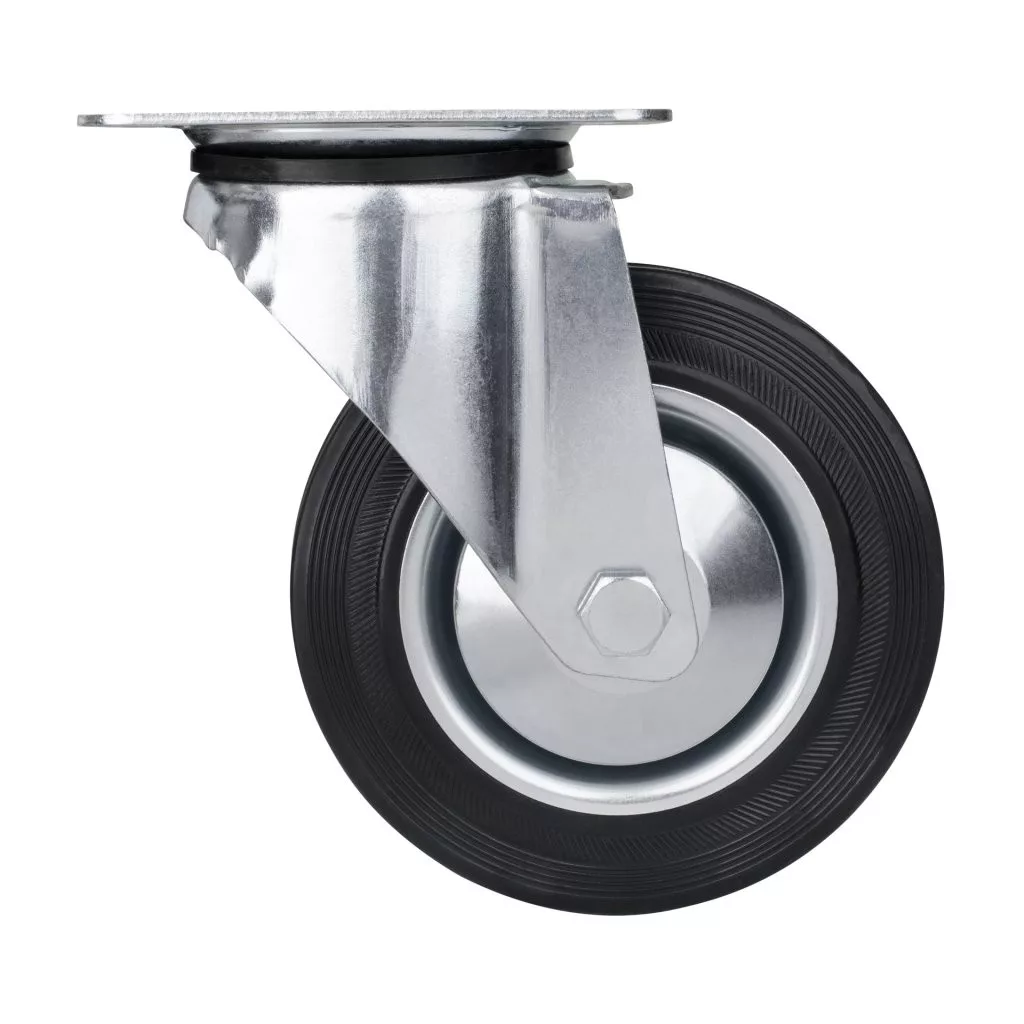 160 mm átmérőjű, 135 kg dinamikus teherbírású, forgó szállítókerék. 200 mm-es kerékmagasság, mérőlappal.
