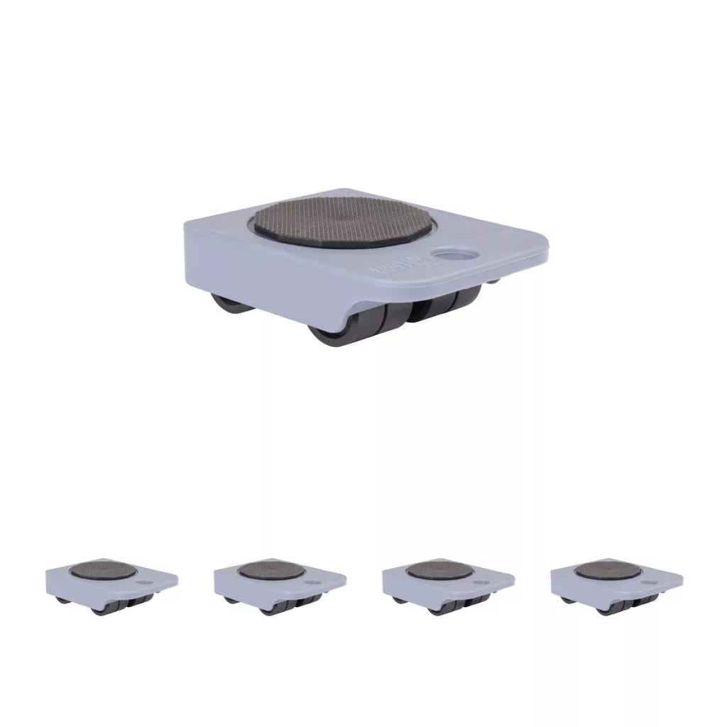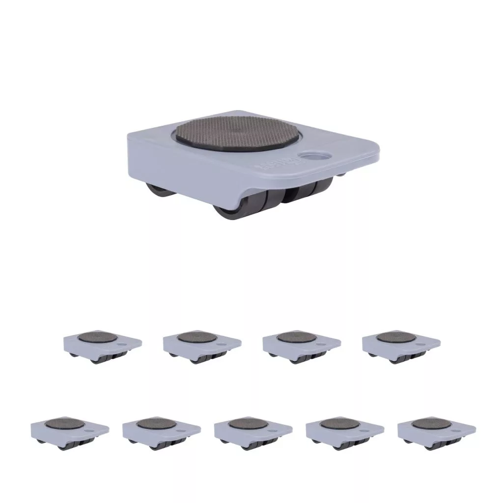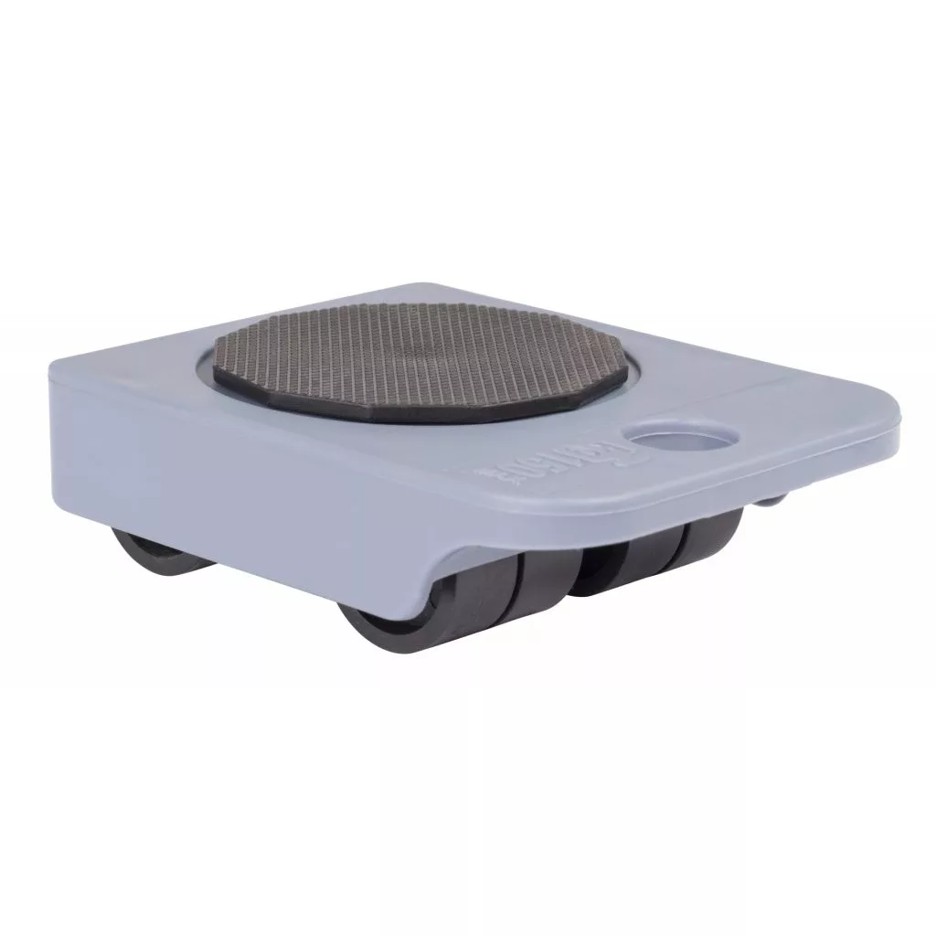 102 x 77 mm méretű, akár 150 kg teherbírású, puha padlókhoz való szállítólap/platform. Műanyag lap, fekete forgó tárcsával és nyolc beépített, 25 mm átmérőjű kerékkel.