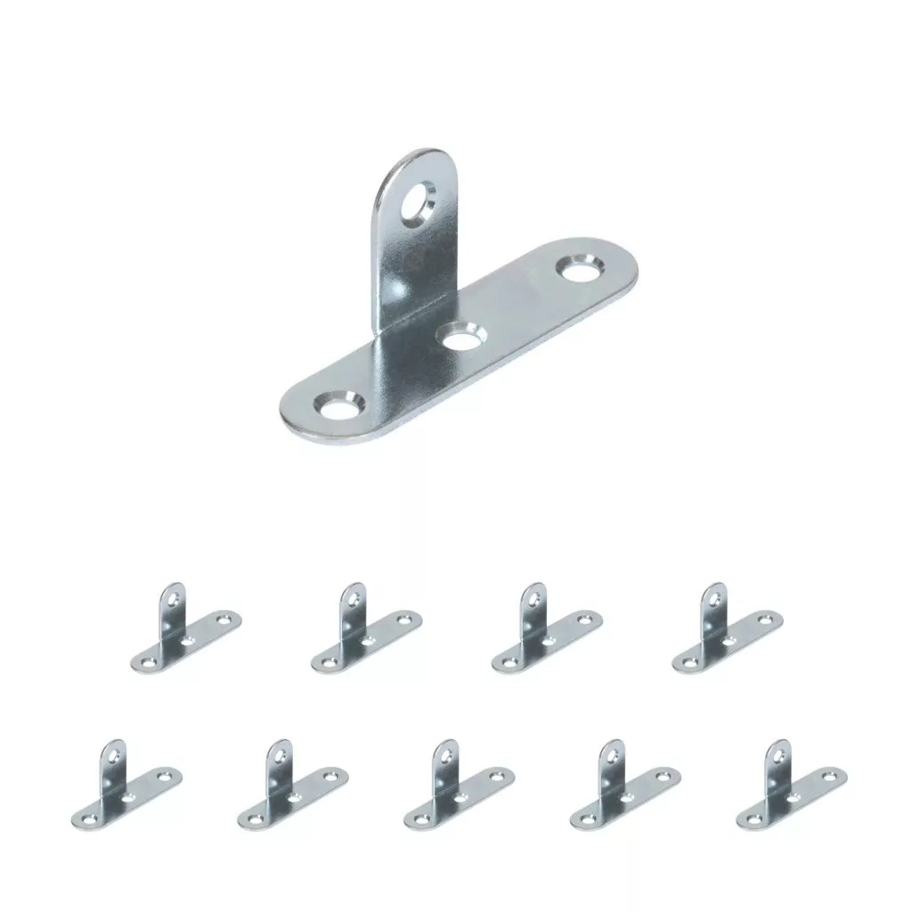 Horganyzott T-alakú összekötő szögidom, 15 mm széles és 40 mm magas, süllyesztett rögzítőfuratokkal.