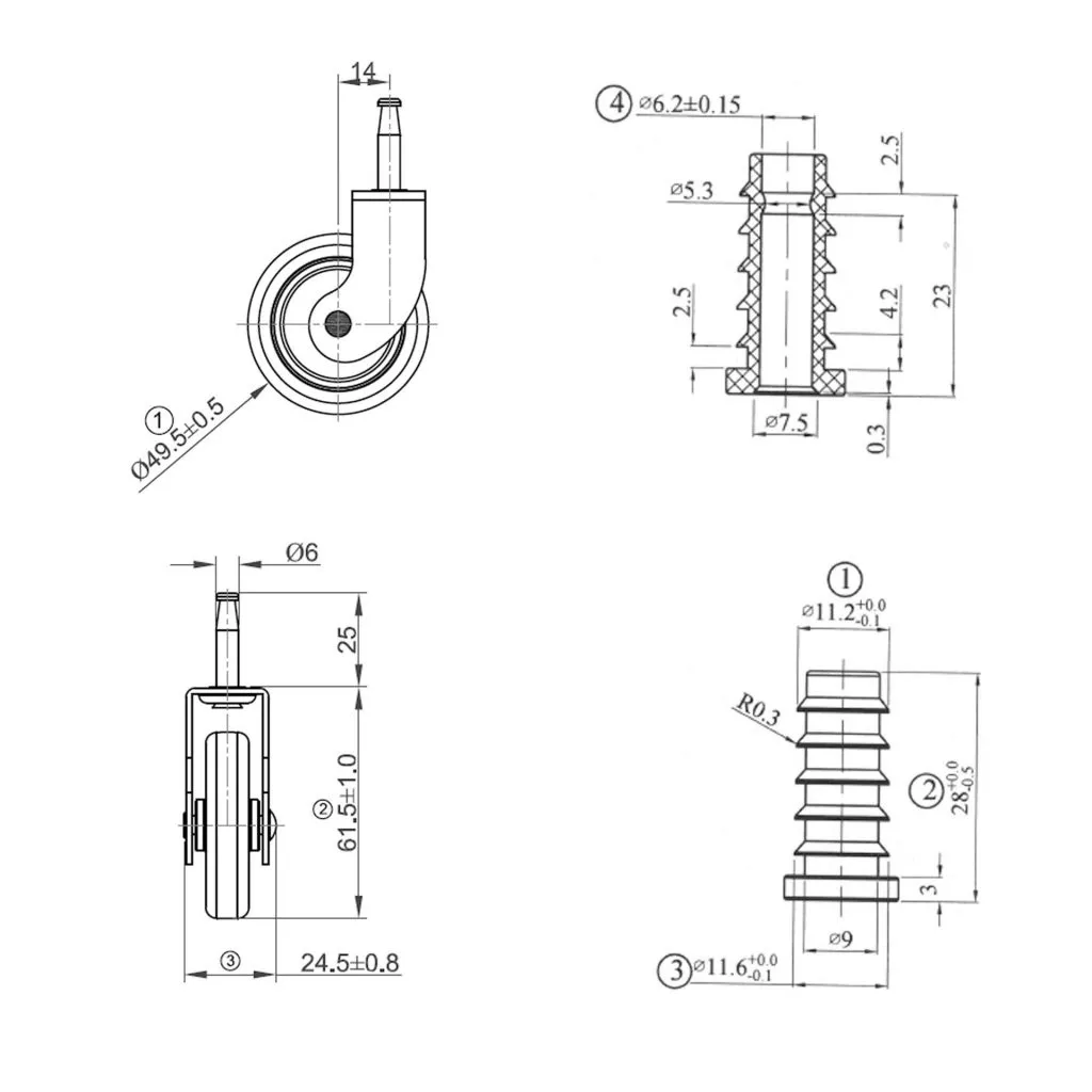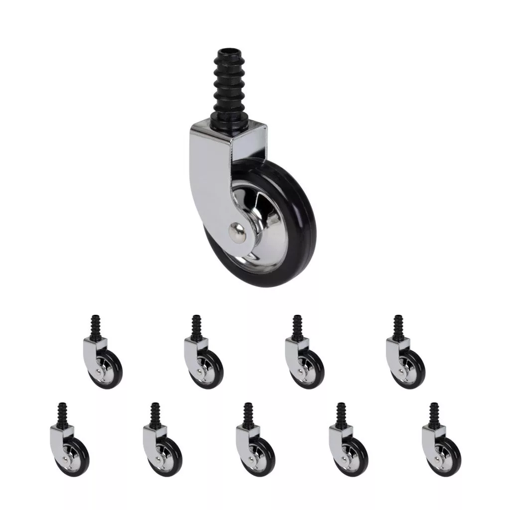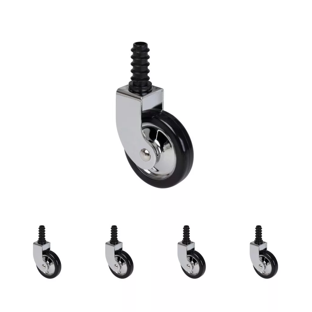 50 mm átmérőjű teáskocsi kerekek, kemény padlóra tervezve. Teherbírása akár 20 kg.
