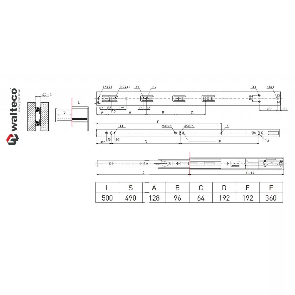 Teljes kihúzású, golyóscsapágyakkal és lágy záródású mechanizmussal, 500 mm hosszú