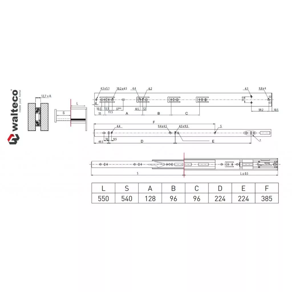 Teljes kihúzás csillapítással 550 mm teherbírás 30 kg 1 pár