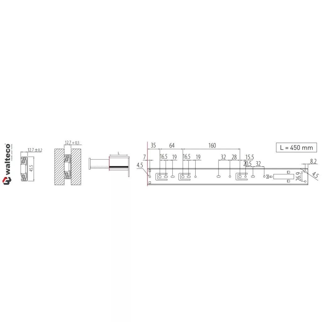Teljes kihúzású PUSH 450 mm fogantyú nélküli fiókhoz teherbírás 25 kg 1 pár