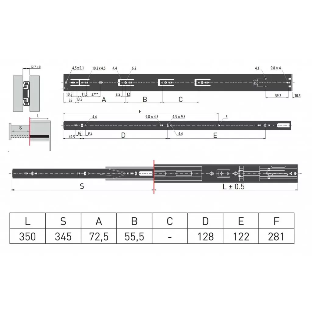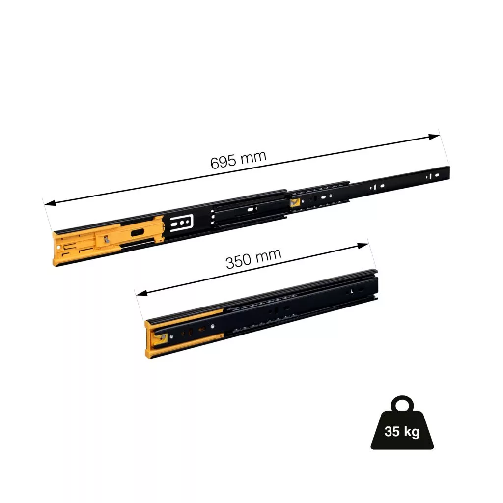 Teljes kihúzású csillapítással 350 mm teherbírás 35 kg fekete 1 pár