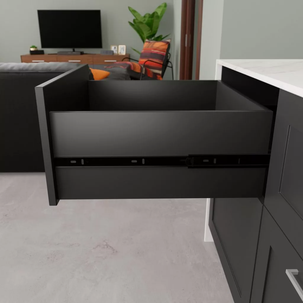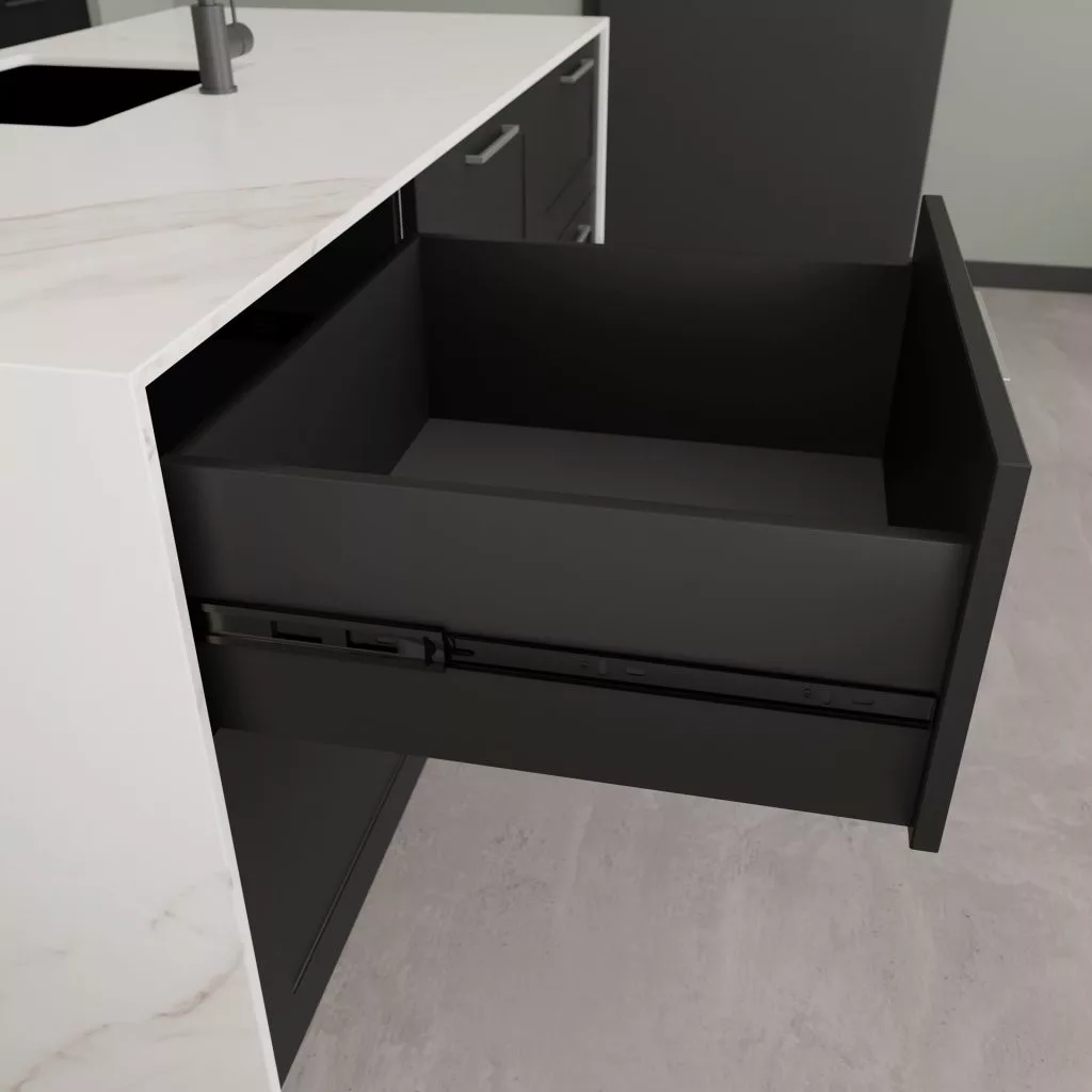 Modern fekete teljes kihúzású, golyóscsapágyakkal és lágyan záródó mechanizmussal, 500 mm hosszú