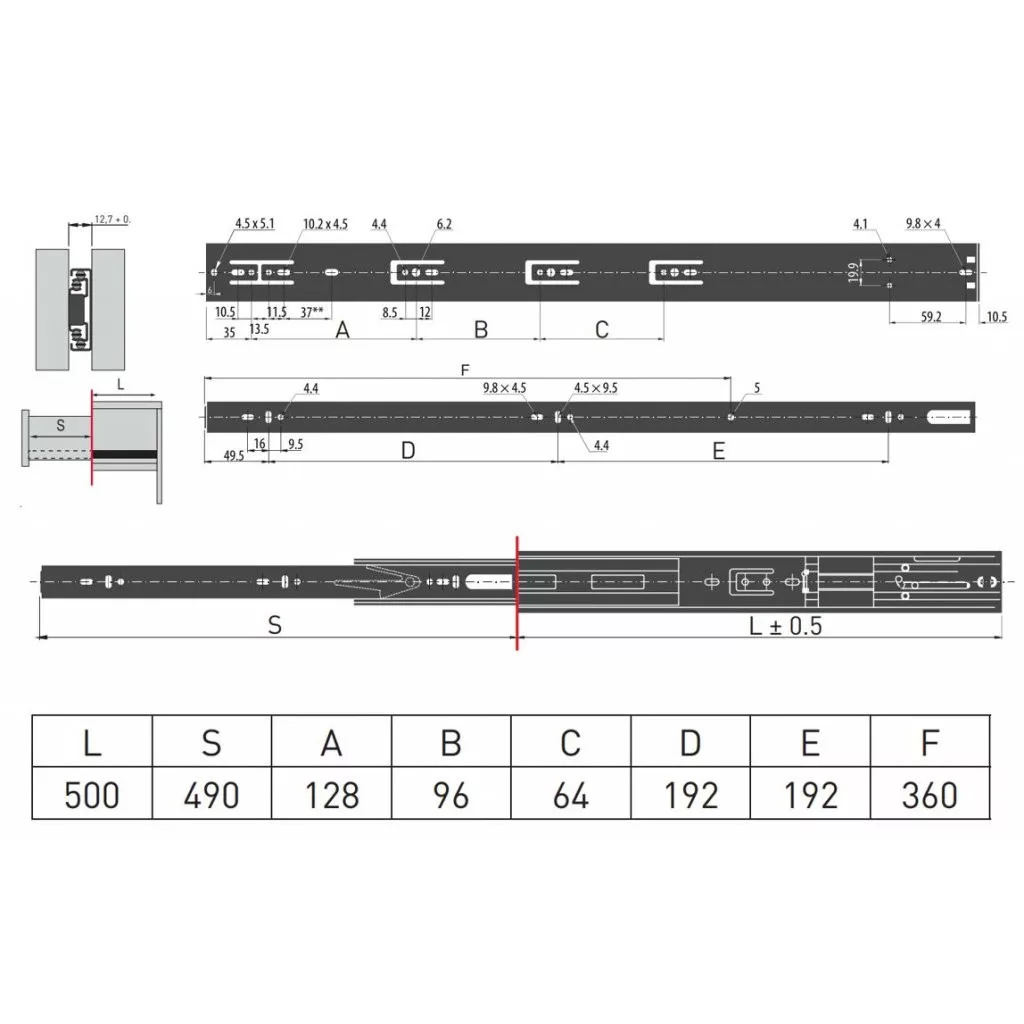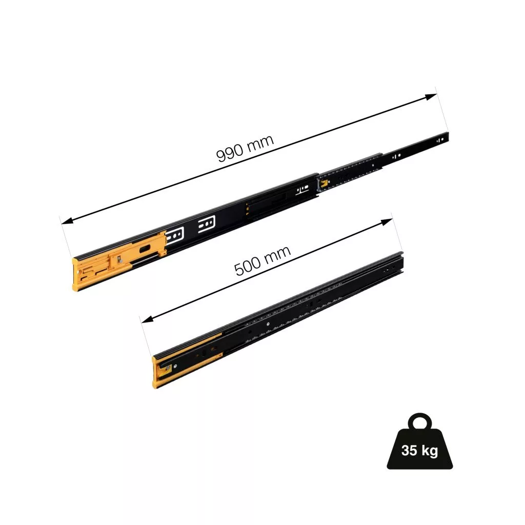Teljes kihúzású csillapítással 500 mm teherbírás 35 kg fekete 1 pár