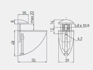 Üvegpolctartó (Pelikán) alu 55x55mm