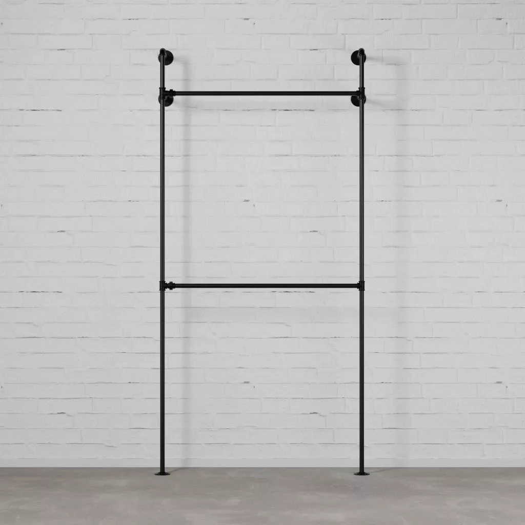 A Rusticline csőrendszerből készült, 2302 mm magas DARIO I DOUBLE gardróbszekrény különlegessé teszi öltözőjét, előszobáját, hálószobáját vagy ruhatárát. Variálhatóságának köszönhetően bármilyen térbe illeszkedik.