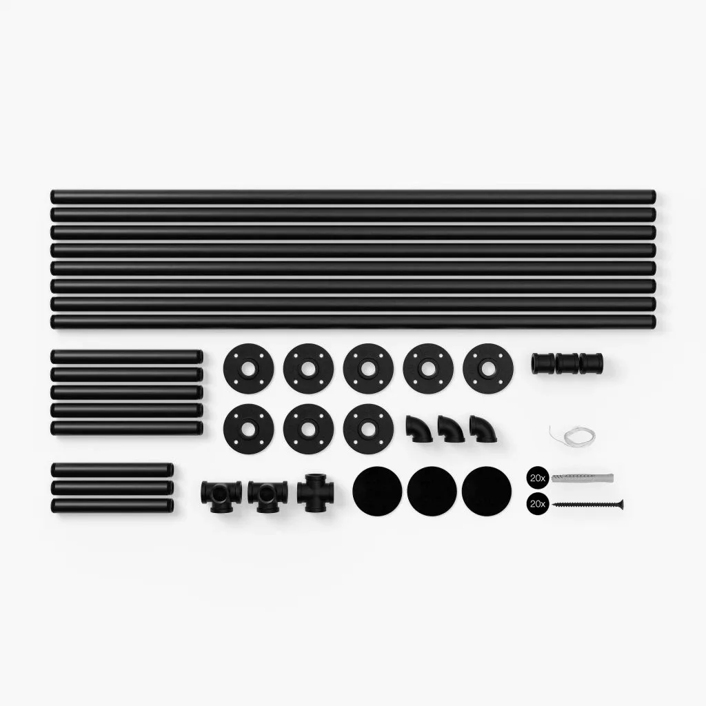 A bútorok vagy kiegészítők összeszerelése csak egy pillanatot vesz igénybe. A csövek, csatlakozók és egyéb alkatrészek menetesek, így csak össze kell csavarozni őket. Ezután a kereteket a deszkákhoz vagy a falhoz csavarozod, és kész is vagy.