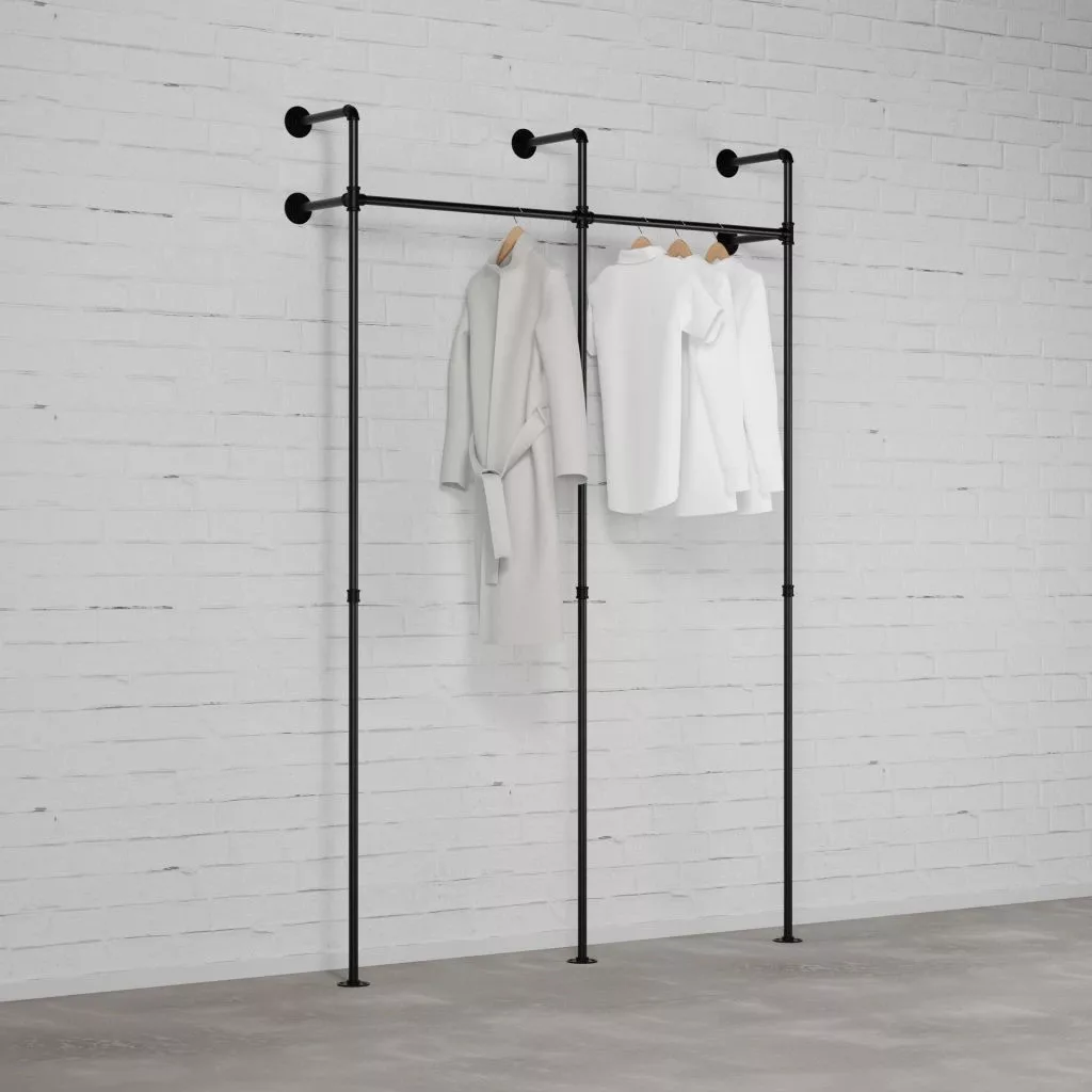 A Rusticline csőrendszerből készült, 2300 mm magas DARIO II SINGLE gardróbszekrény különlegessé teszi gardróbszobáit, előszobáit, hálószobáit vagy ruhatárait. Variálhatóságának köszönhetően bármilyen térbe illeszkedik.