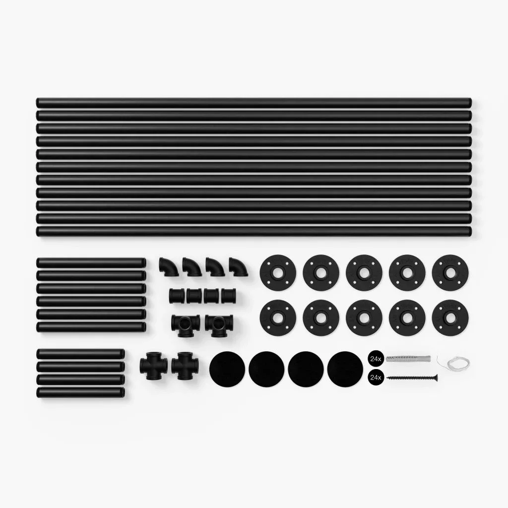 A bútorok vagy kiegészítők összeszerelése csak egy pillanatot vesz igénybe. A csövek, csatlakozók és egyéb alkatrészek menetesek, így csak össze kell csavarozni őket. Ezután a kereteket a deszkákhoz vagy a falhoz csavarozod, és kész is vagy.
