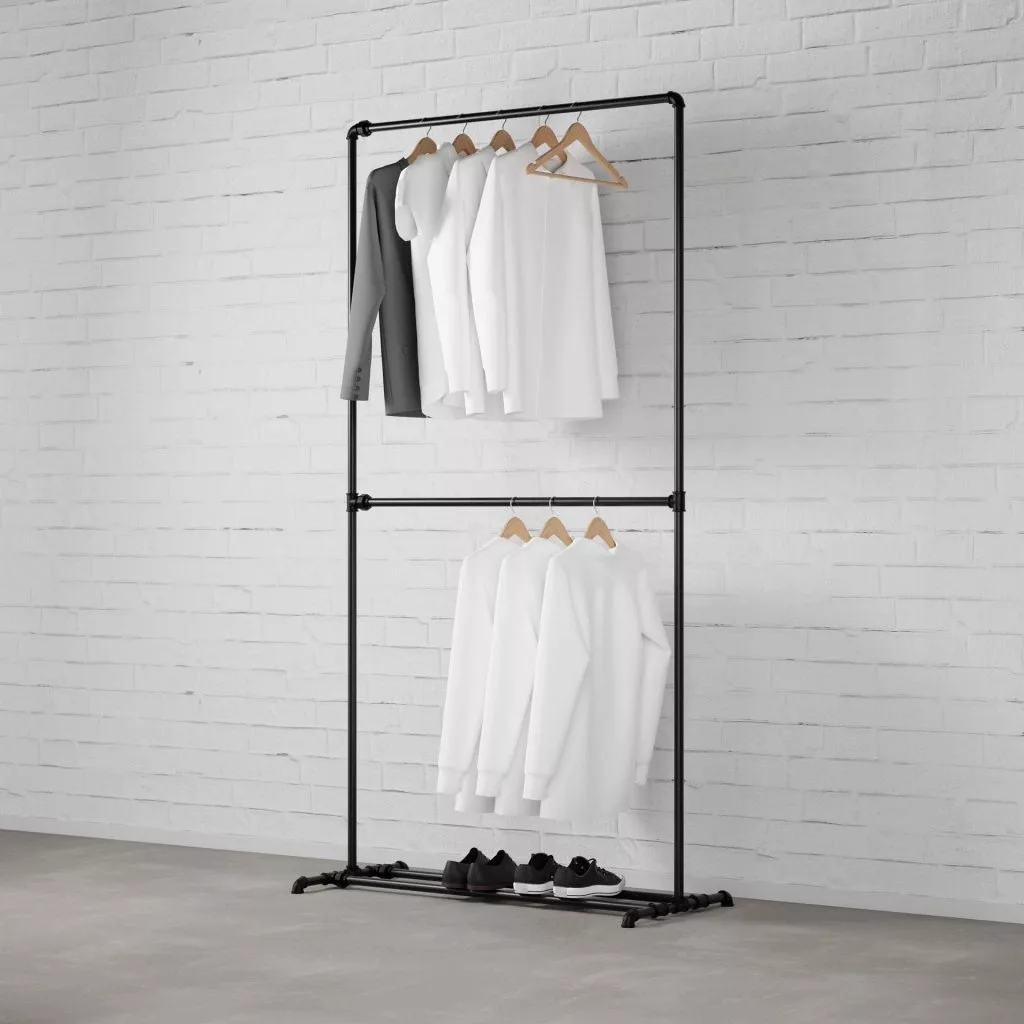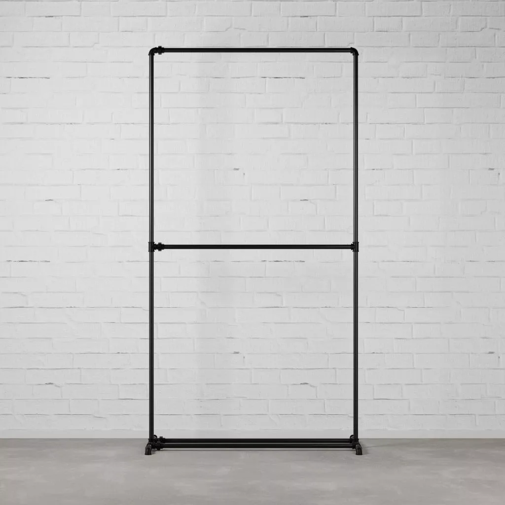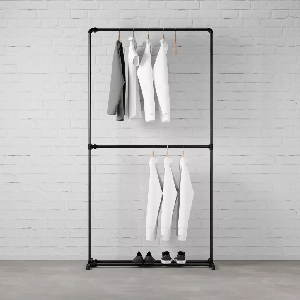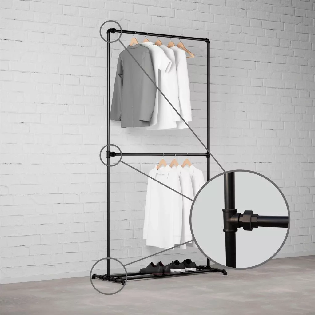 Vintage dizájn: Ez az ipari stílusú ruhaállvány különleges megjelenést kölcsönöz ruhatárának. Tökéletesen kiegészíti a többi Rusticline szettet és dizájnelemet.
