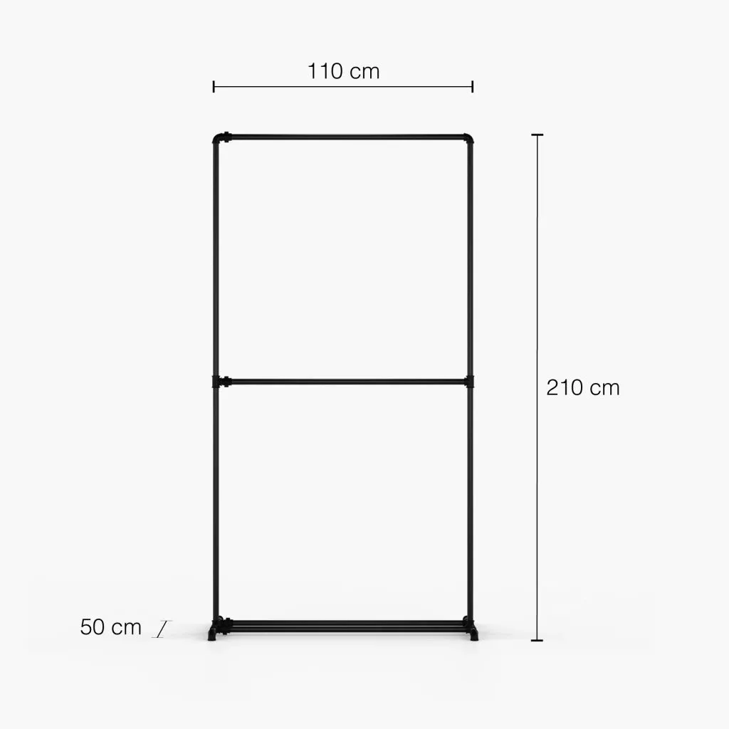 A Rusticline csőrendszerből készült, 2100 mm magas FREJA I ruhaállvány különlegessé teszi öltözőjét, előszobáját, hálószobáját vagy ruhatárát. Variálhatóságának köszönhetően bármilyen térbe illeszkedik, mivel az állványt bárhová áthelyezheti, ahol szüksége van rá. Az állvány alján rudak találhatók cipők/dobozok/egyéb kiegészítők tárolására.
