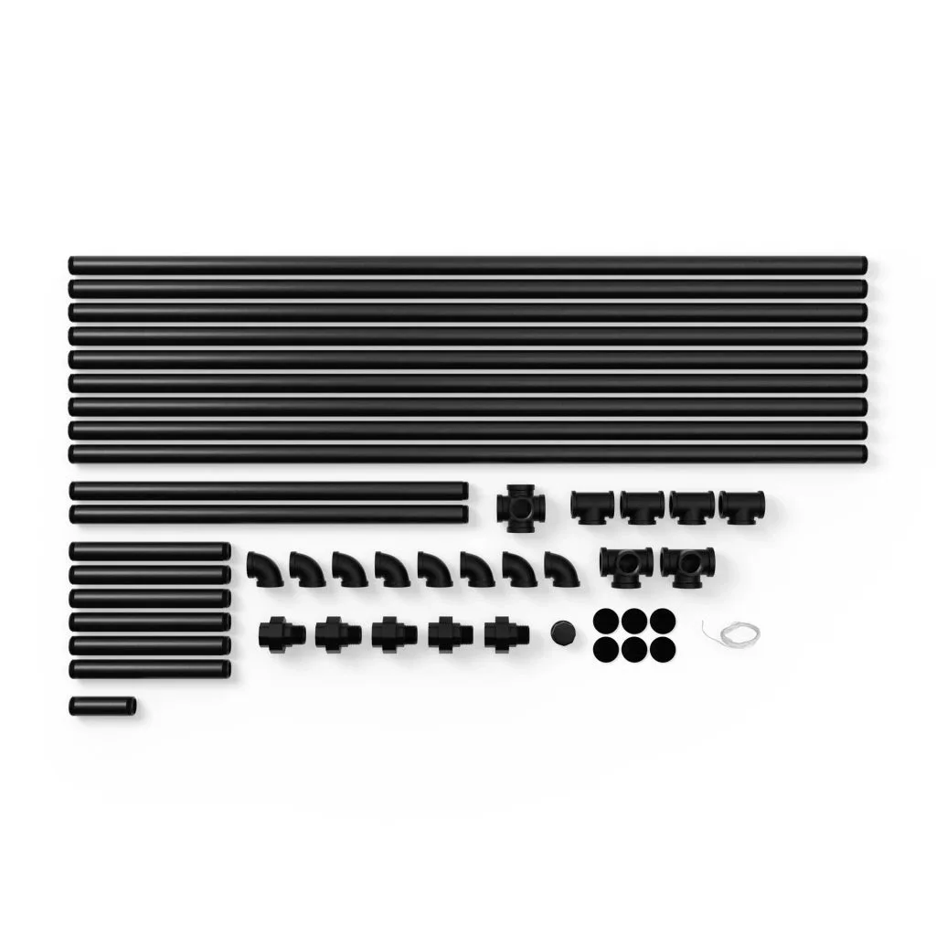 A bútorok vagy kiegészítők összeszerelése csak egy pillanatot vesz igénybe. A csövek, csatlakozók és egyéb alkatrészek menetesek, így csak össze kell csavarozni őket. Ezután a kereteket a deszkákhoz vagy a falhoz csavarozod, és kész is vagy.