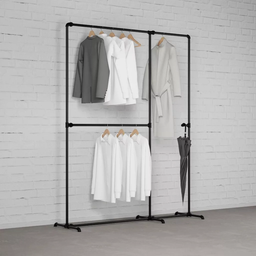 Vintage dizájn: Az ipari stílusú dupla ruhatartó különlegessé teszi gardróbját. Tökéletesen kiegészíti a többi Rusticline szettet és építőelemet.