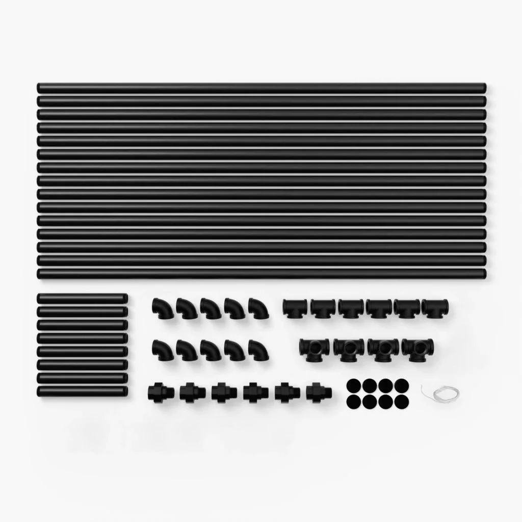 A bútorok vagy kiegészítők összeszerelése csak egy pillanatot vesz igénybe. A csövek, csatlakozók és egyéb alkatrészek menetesek, így csak össze kell csavarozni őket. Ezután a kereteket a deszkákhoz vagy a falhoz csavarozod, és kész is vagy.