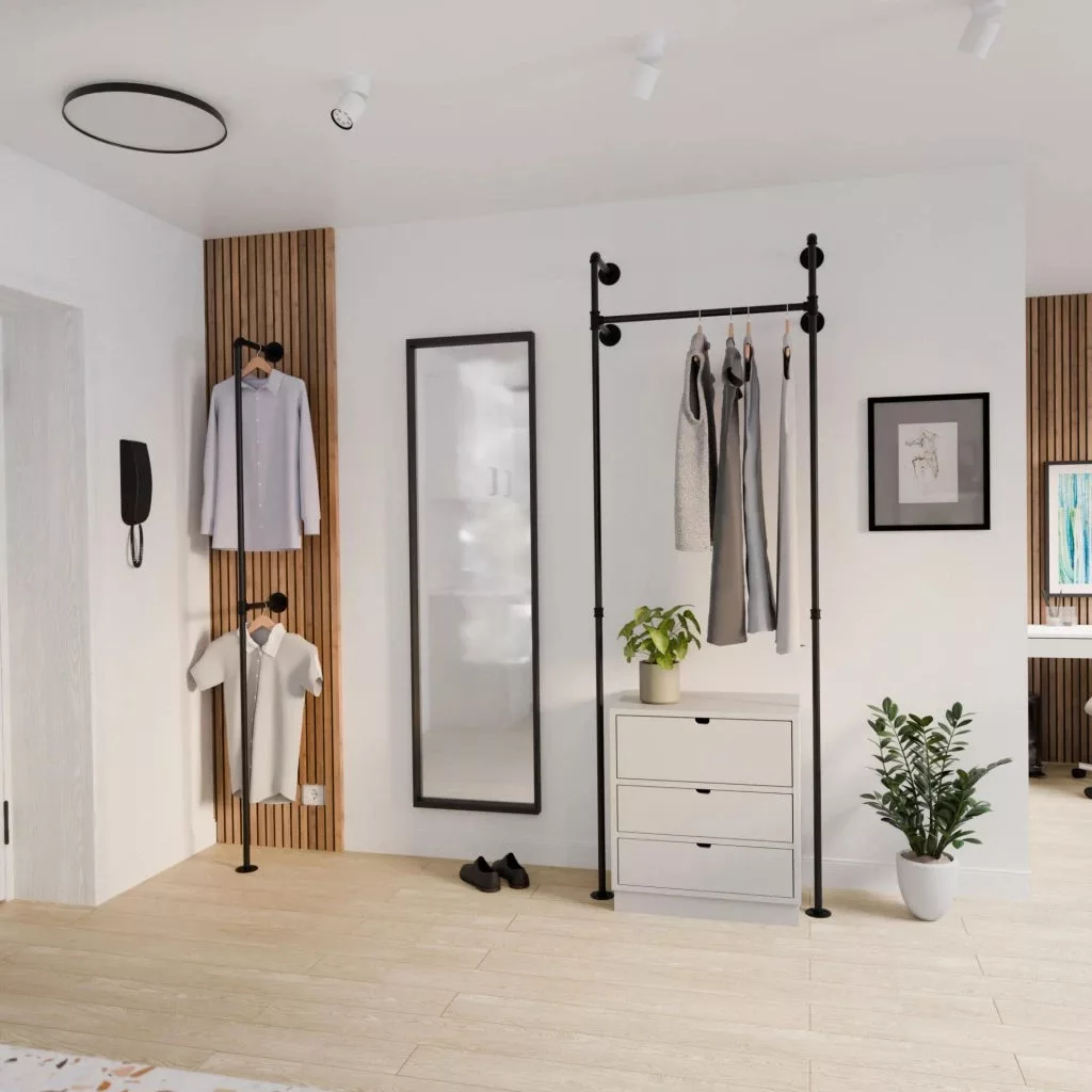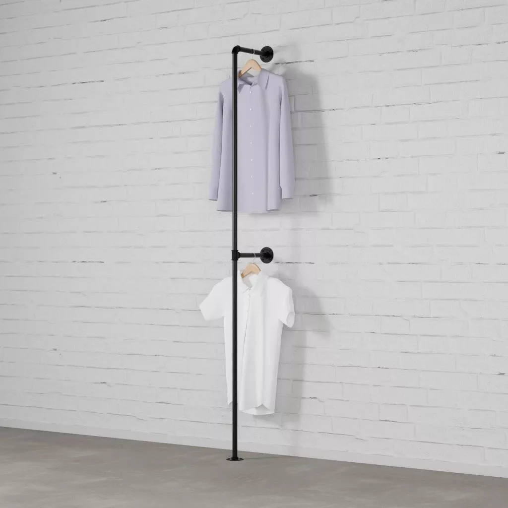 A Rusticline csőrendszerből készült, 2100 mm magas LARS III ruhatartó különleges hangulatot kölcsönöz ruhatárának, előszobájának, hálószobájának vagy ruhatárának. Sokoldalúságának köszönhetően bármilyen térbe illeszkedik.