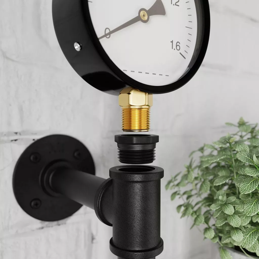 A Rusticline csőrendszerhez való stílusos RT-22 nyomásmérő kiemeli a tervezett szerkezet ipari jellegét. A csatlakozókhoz a 3/4 x 1/2 hüvelykes RT-18 reduktor segítségével rögzíthető, amely közvetlenül a nyomásmérőhöz készült, ezért külön kell megvásárolni, IDE kattintva érhető el.