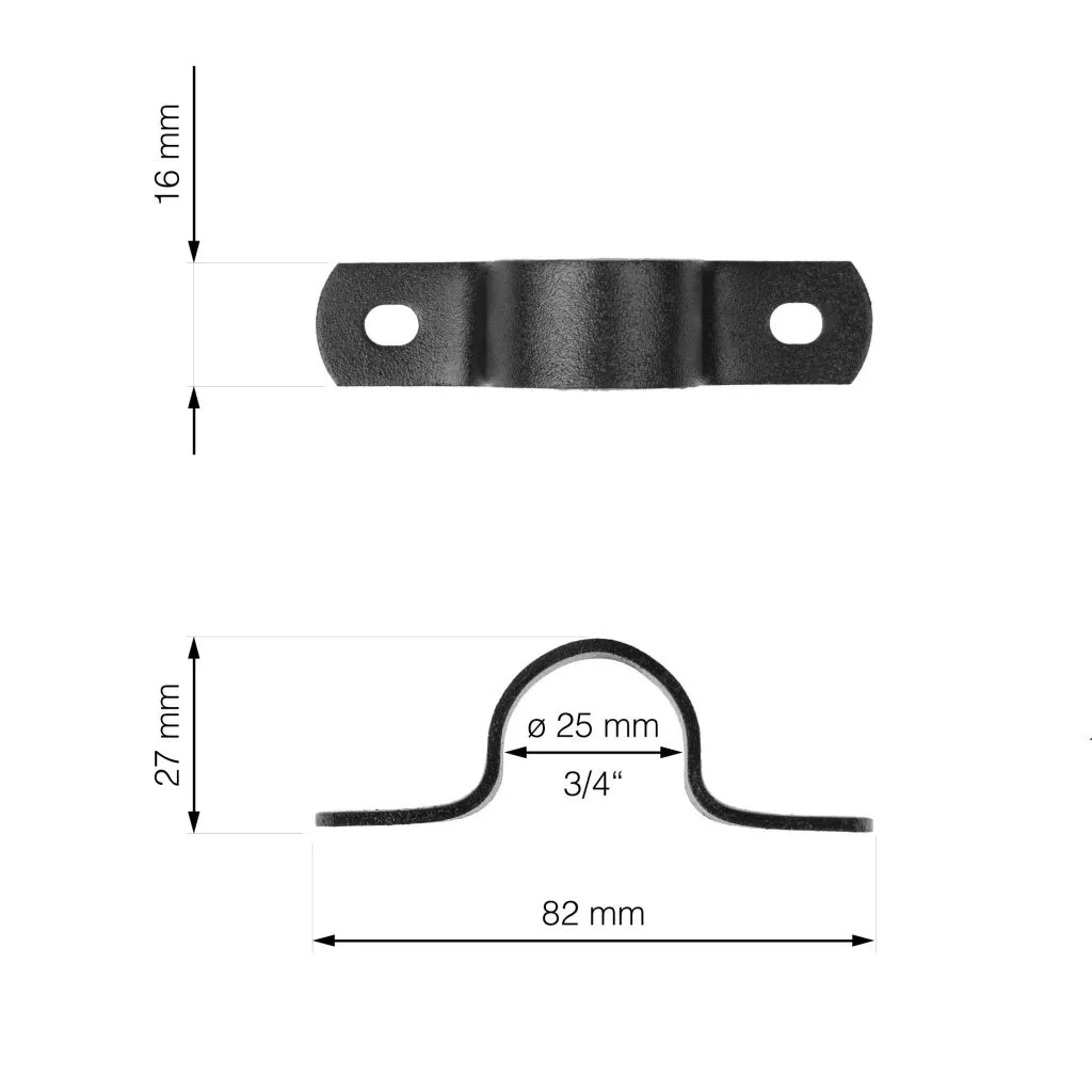 Fekete RT-47 bilincs, 25 mm átmérővel, a Rusticline polcrendszer polcainak rögzítéséhez. A csomag 4 bilincset tartalmaz.