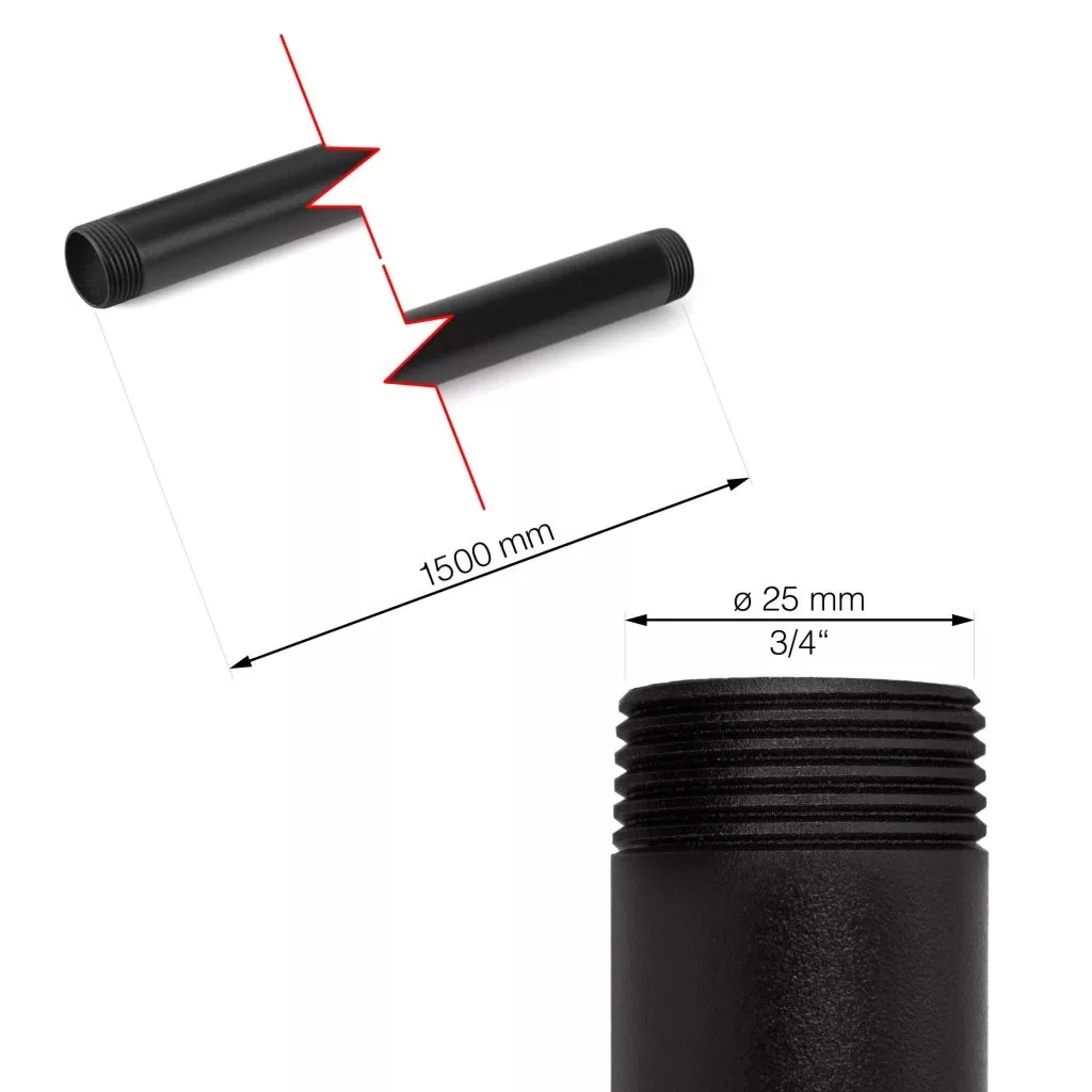 Fekete, RT-33 csavaros cső, 1500 mm hosszú, Rusticline csőszerű polcrendszerhez.