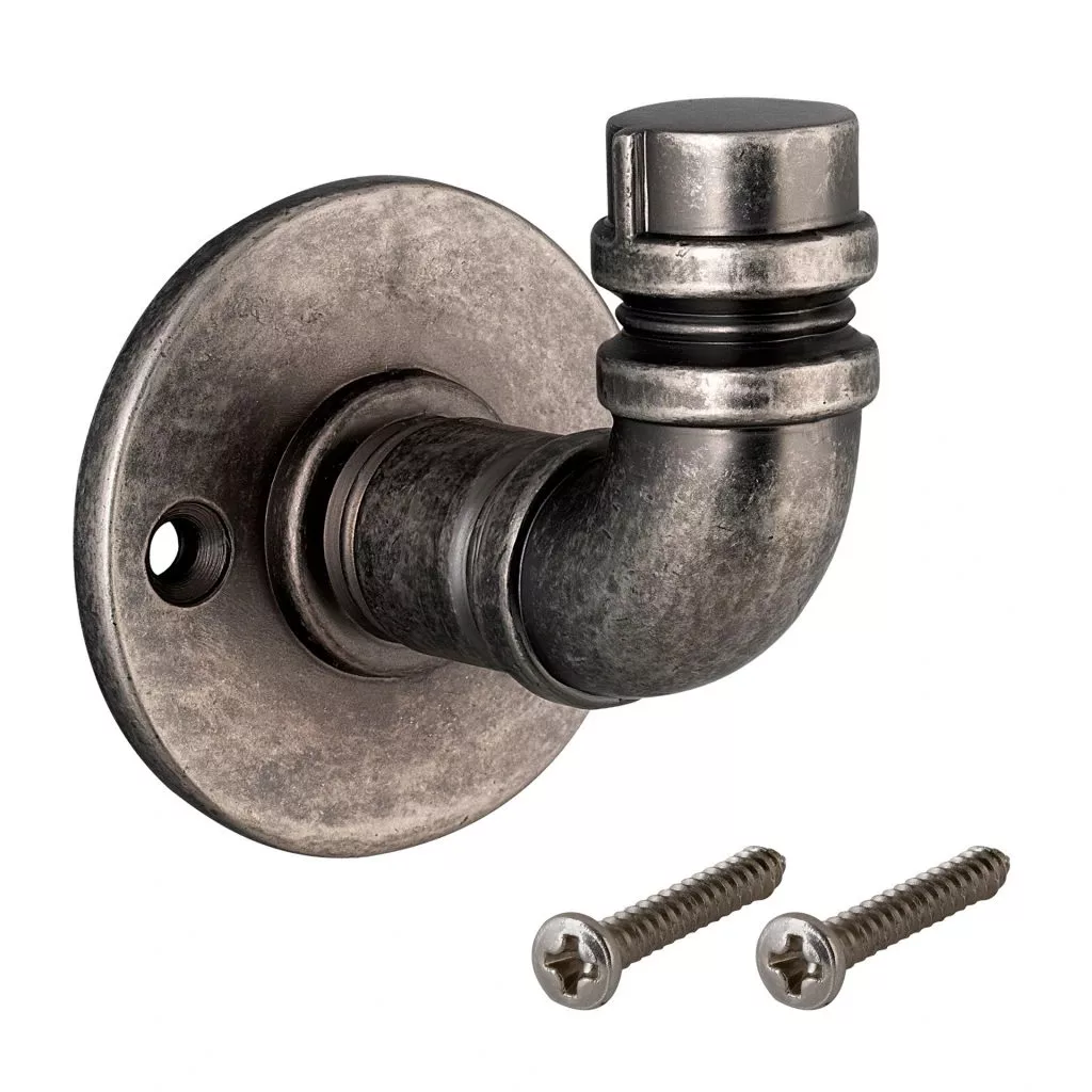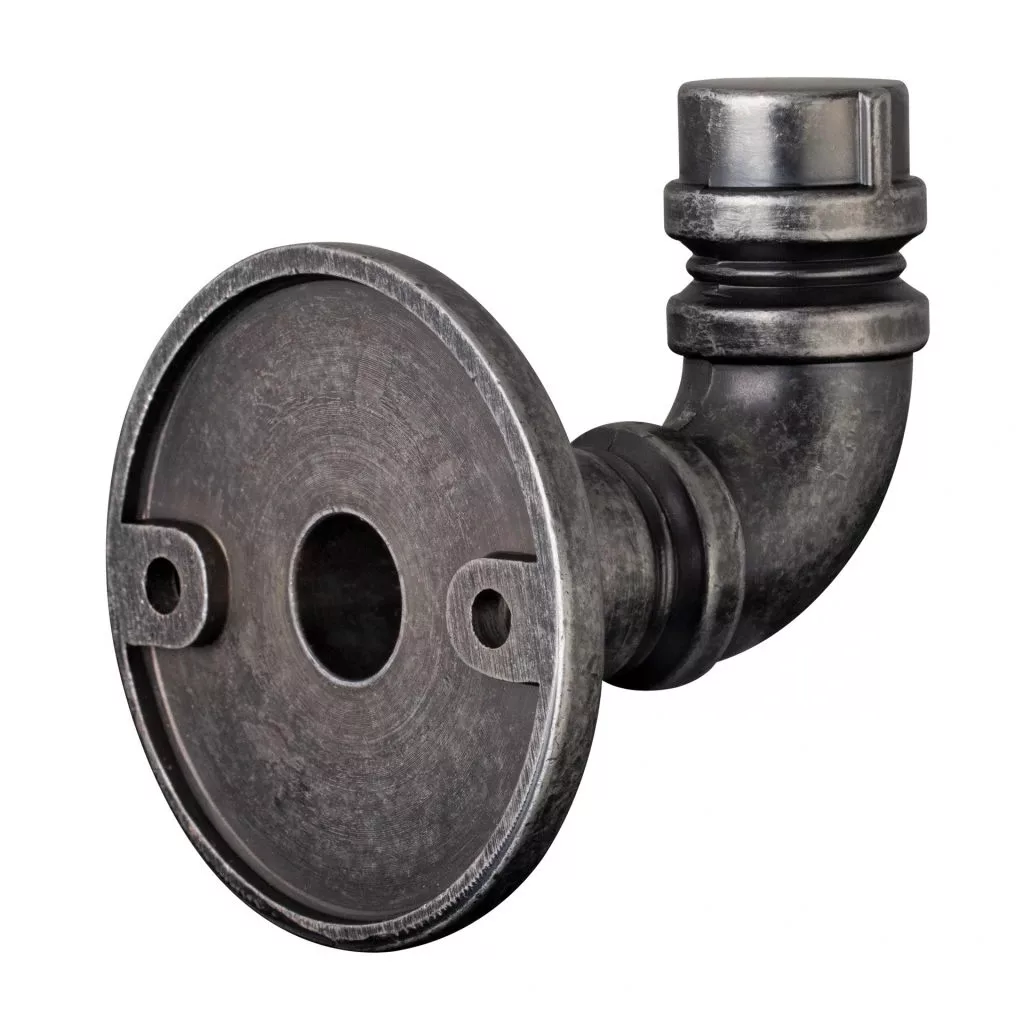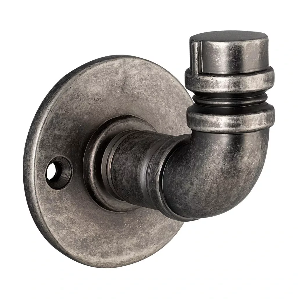 Stílusos, rusztikus stílusú kabáttartó antik ezüst színben, 54 mm szélességgel/átmérővel, 63 mm magassággal és 60 mm mélységgel. A falra vagy fa felületre való rögzítéshez 37 mm távolságra van egymástól. A kabáttartó stílusosan ideális a Rusticline csőrendszerünkkel kombinálva.