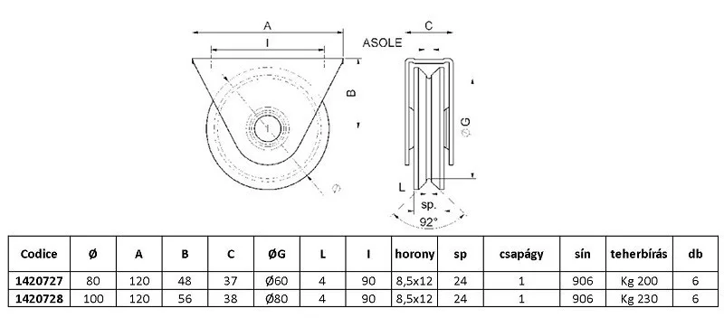 Schiebetorrolle 100 mm "V" Basis 411 Italienisch